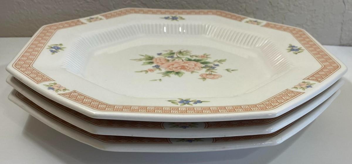 3 Nikko Classic Collection Rose Octagonal 10.75" Plates Made In Japan