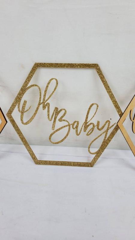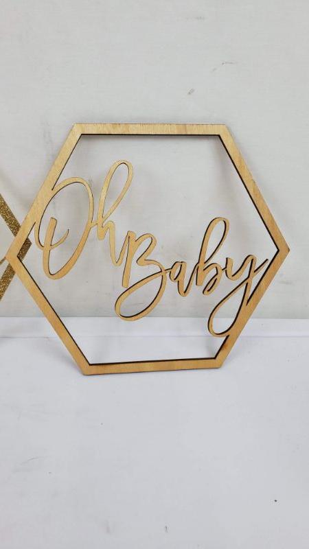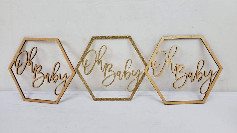 3 Oh Baby Signs: 1 Glitter Sign & 2 Wood Signs - New