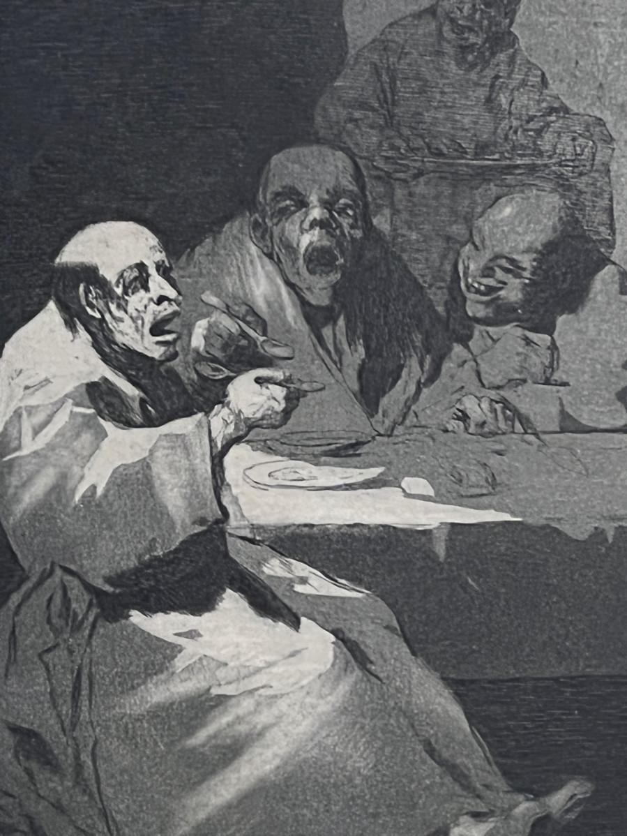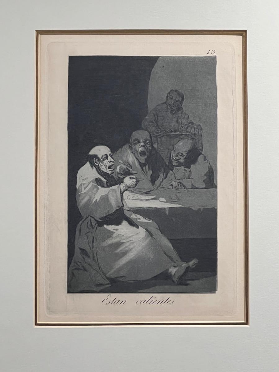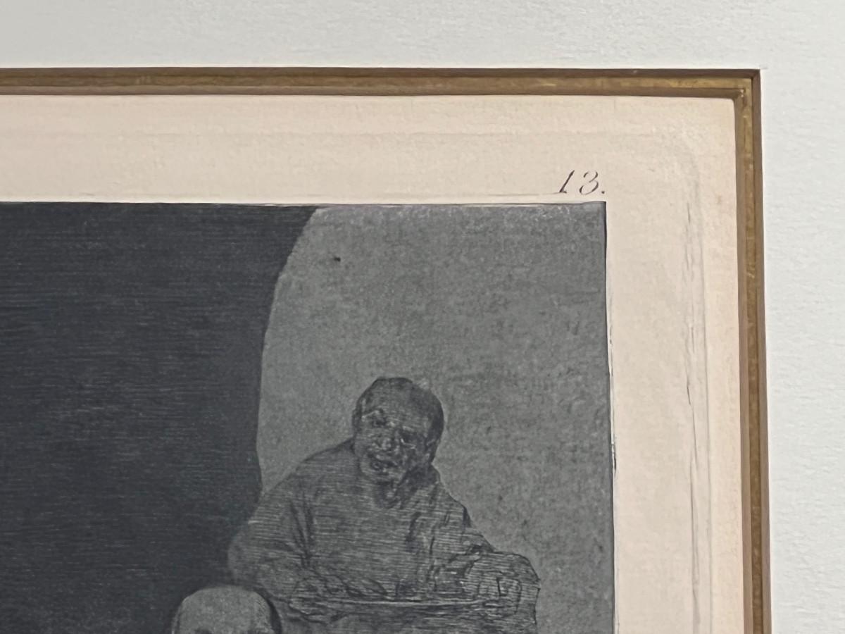3 Old Monks Eating Hot Food Original Etching "Estan Calientes"