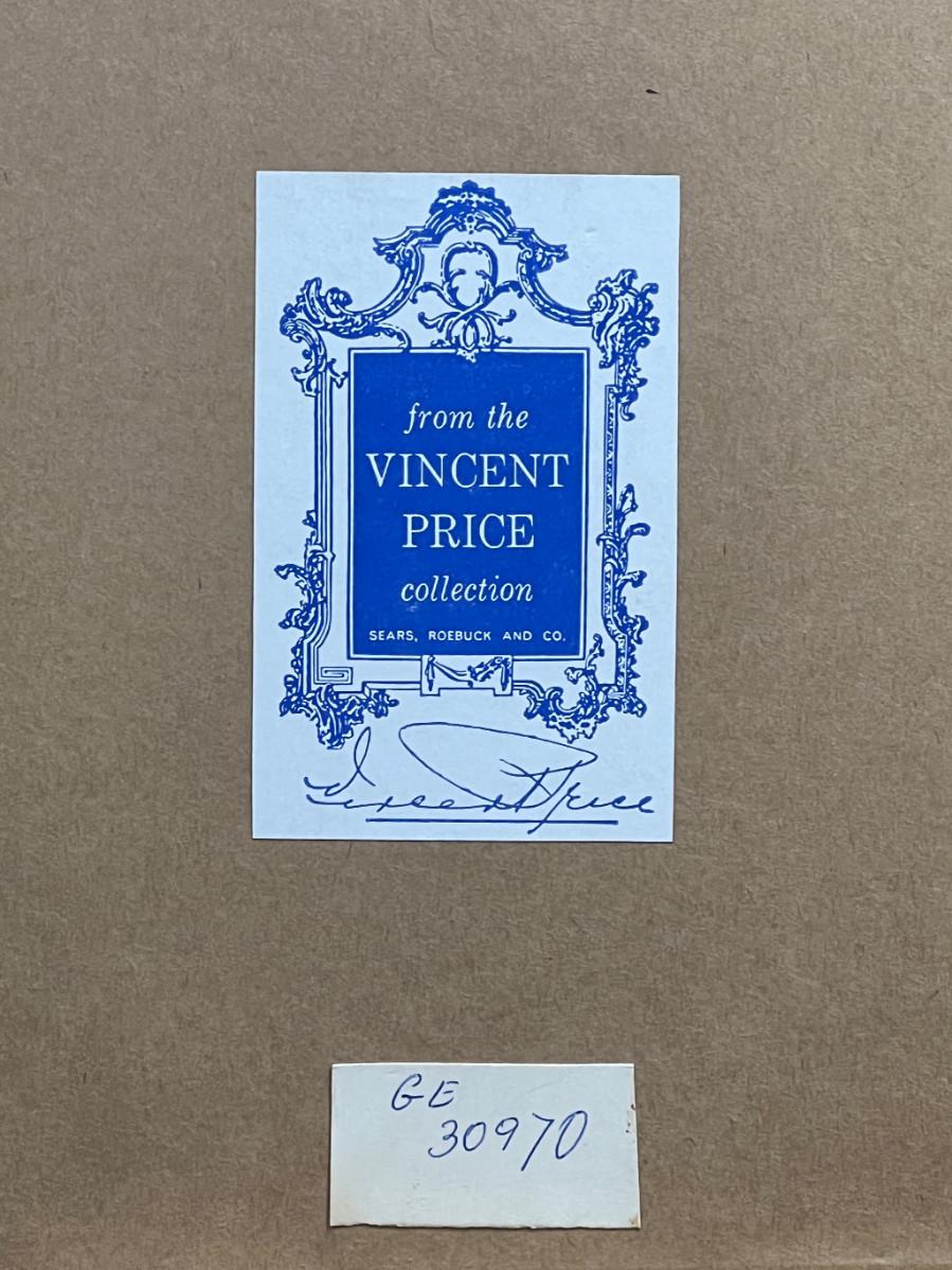 SIGNATURE: Unsigned. “From the Vincent Price Collection” label on the back.