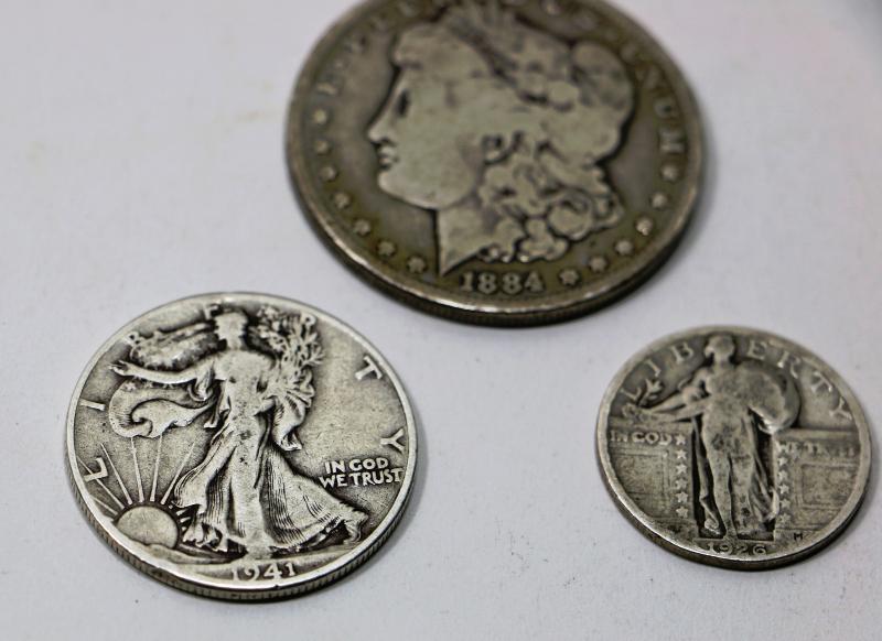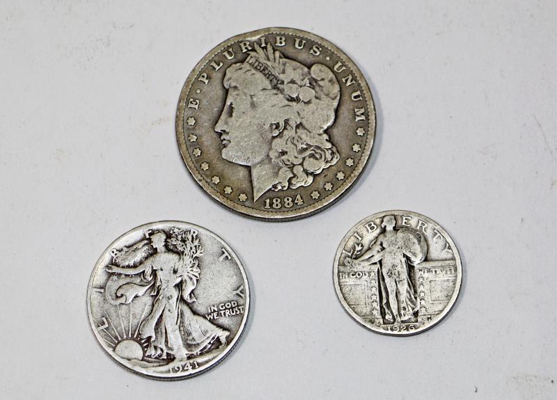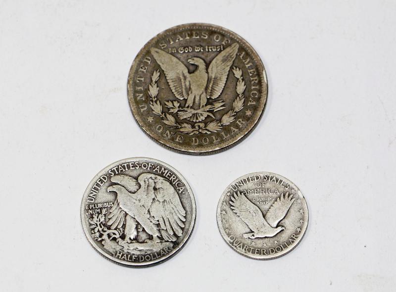 3 Old US Silver Coins Morgan Dollar Walking Liberty Half Stndg Liberty Quarter