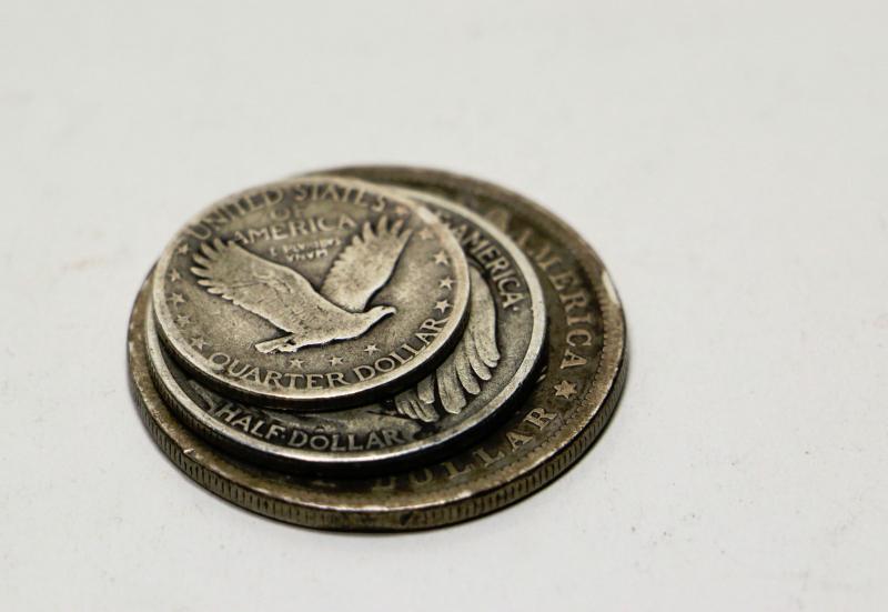 3 Old US Silver Coins - Morgan Dollar Walking Liberty Half and Standing Liberty Quarter.