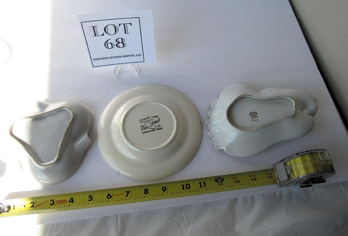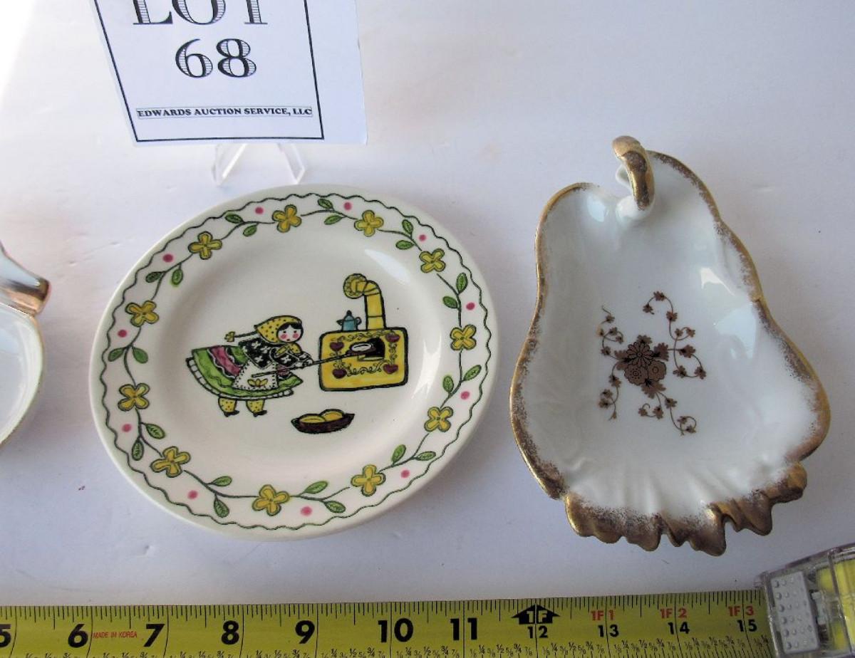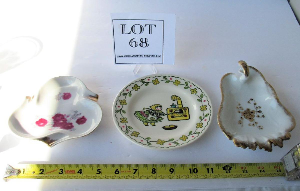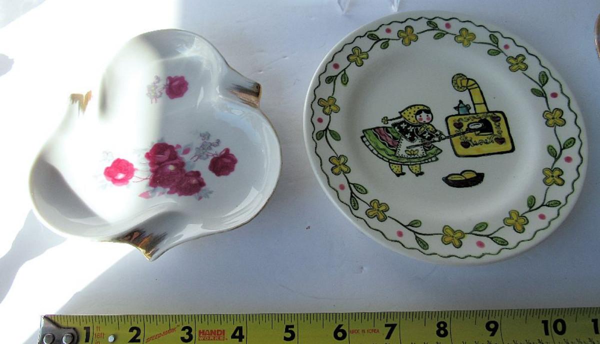 3 Older Dishes, Metlox Happy Time Small Plate, Lefton Candy Dish and Floral Ashtray