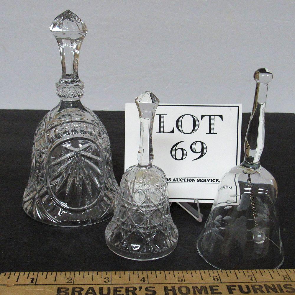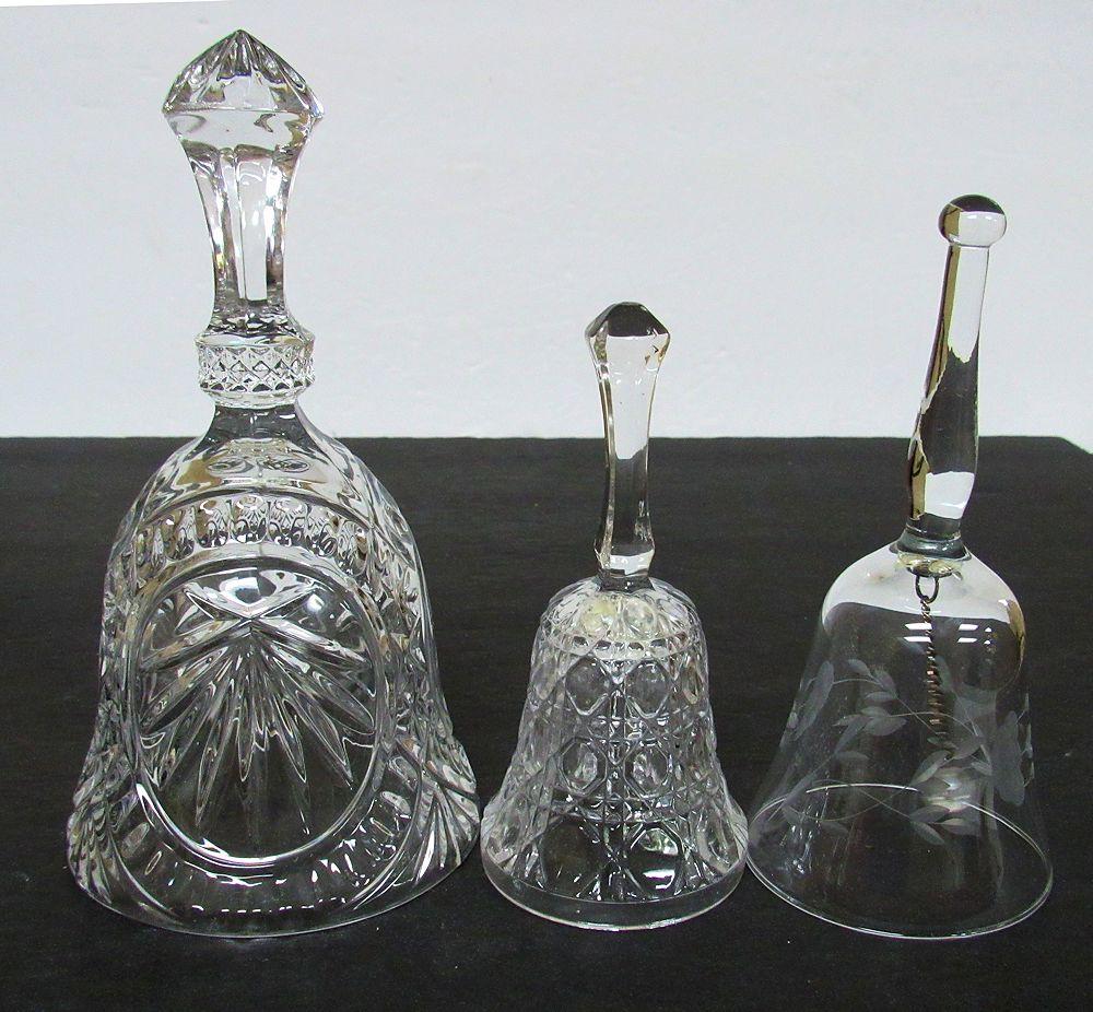 3 Older Glass Bells, Lead Crystal, Pressed Glass, and Cut Glass