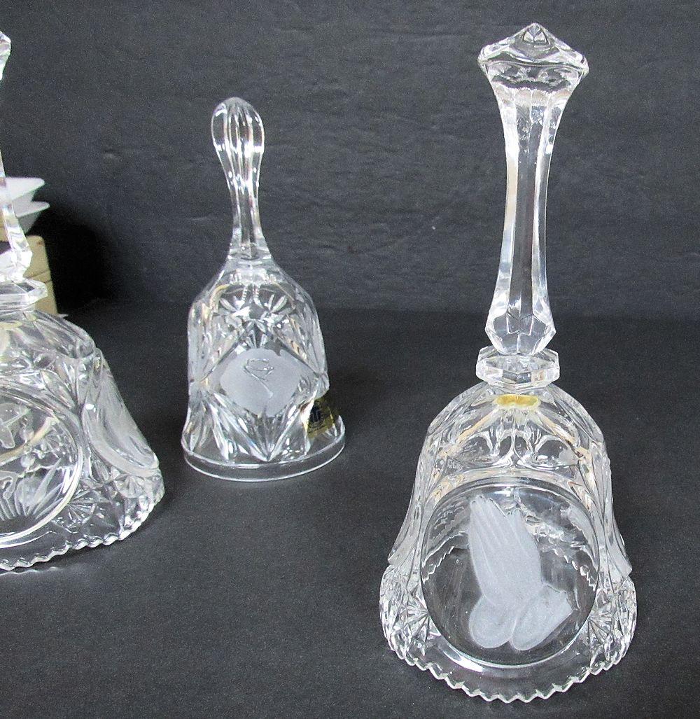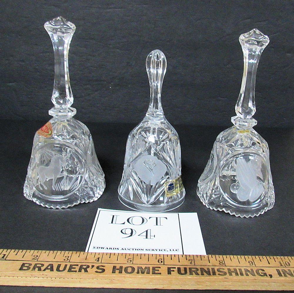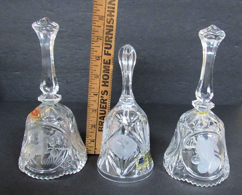 3 Older Lead Glass Bells With Frosted Images, Nice