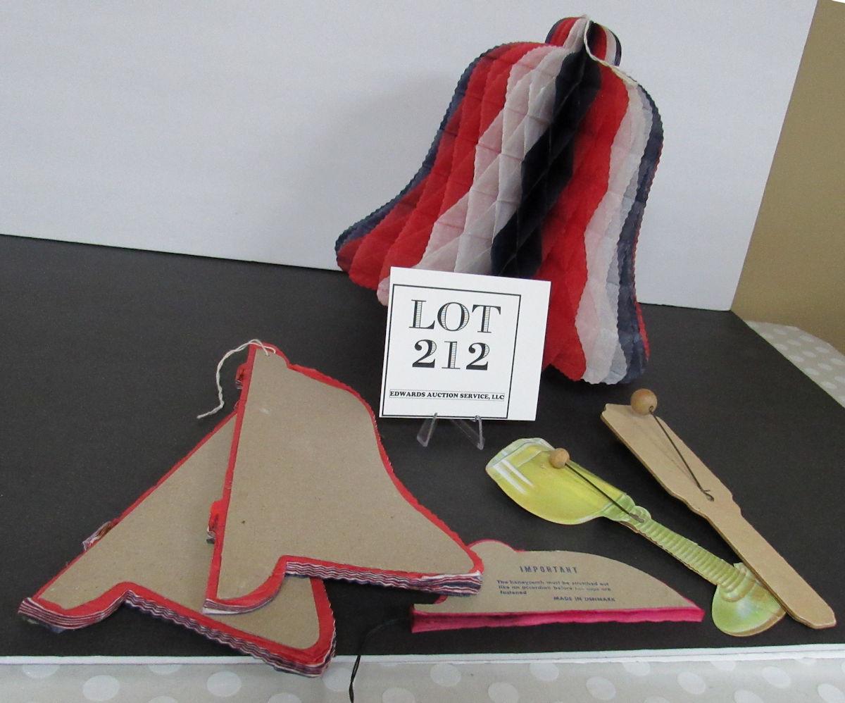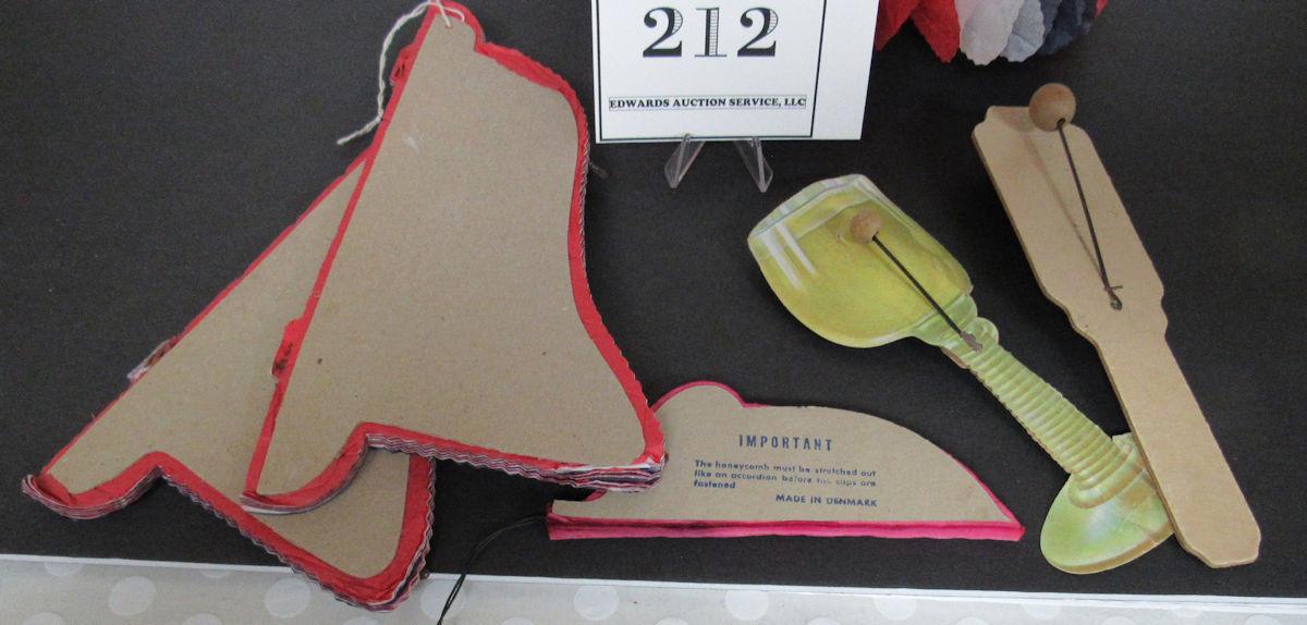 3 Old Honeycomb Patriotic Bells, 1 Honeycomb Acorn, 2 Noisemakers