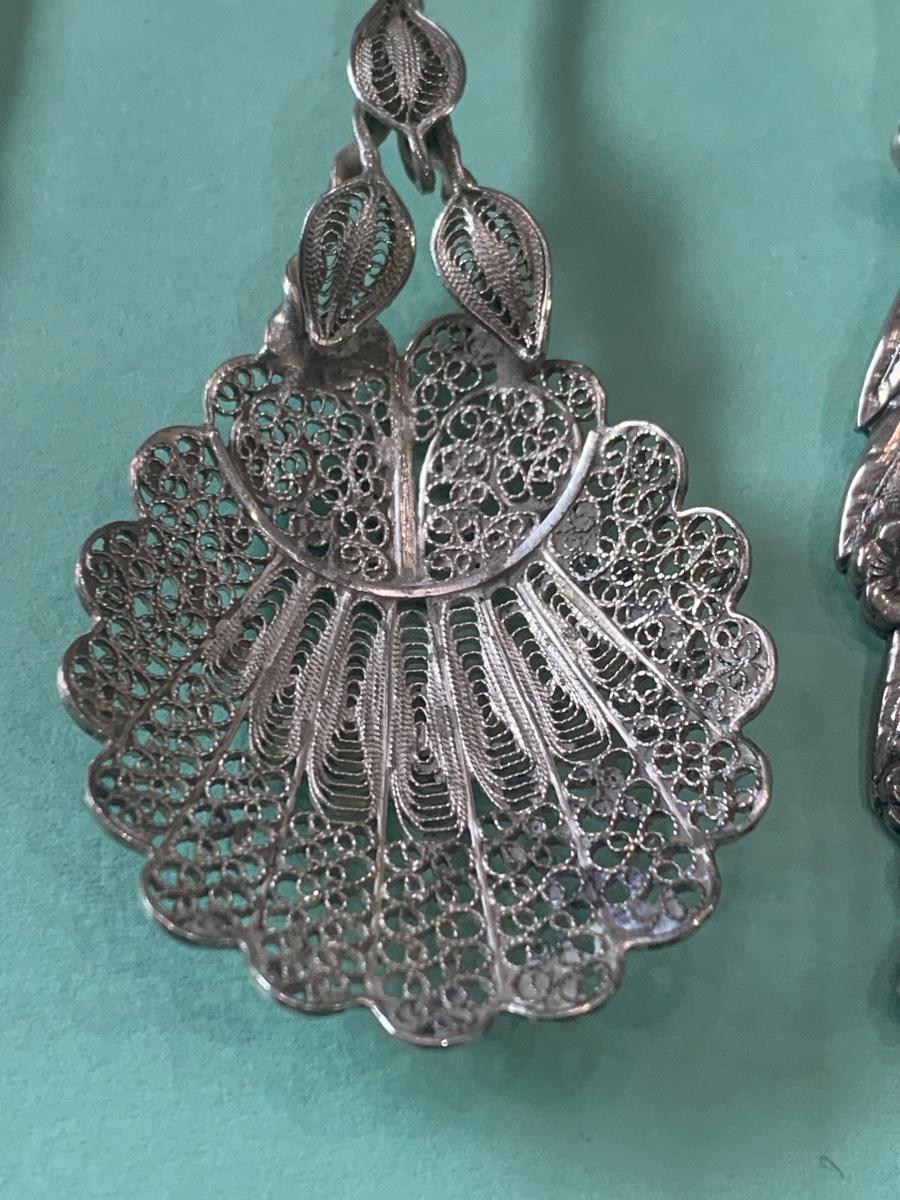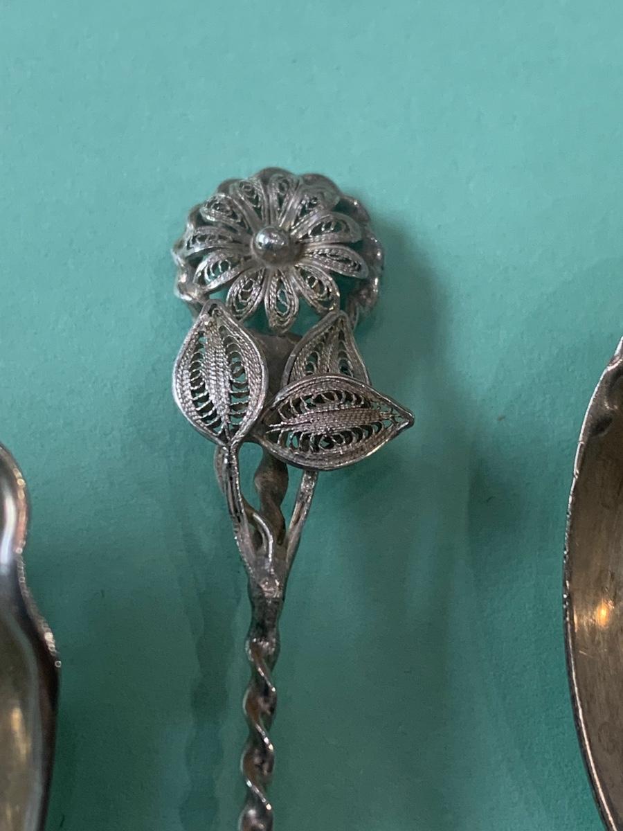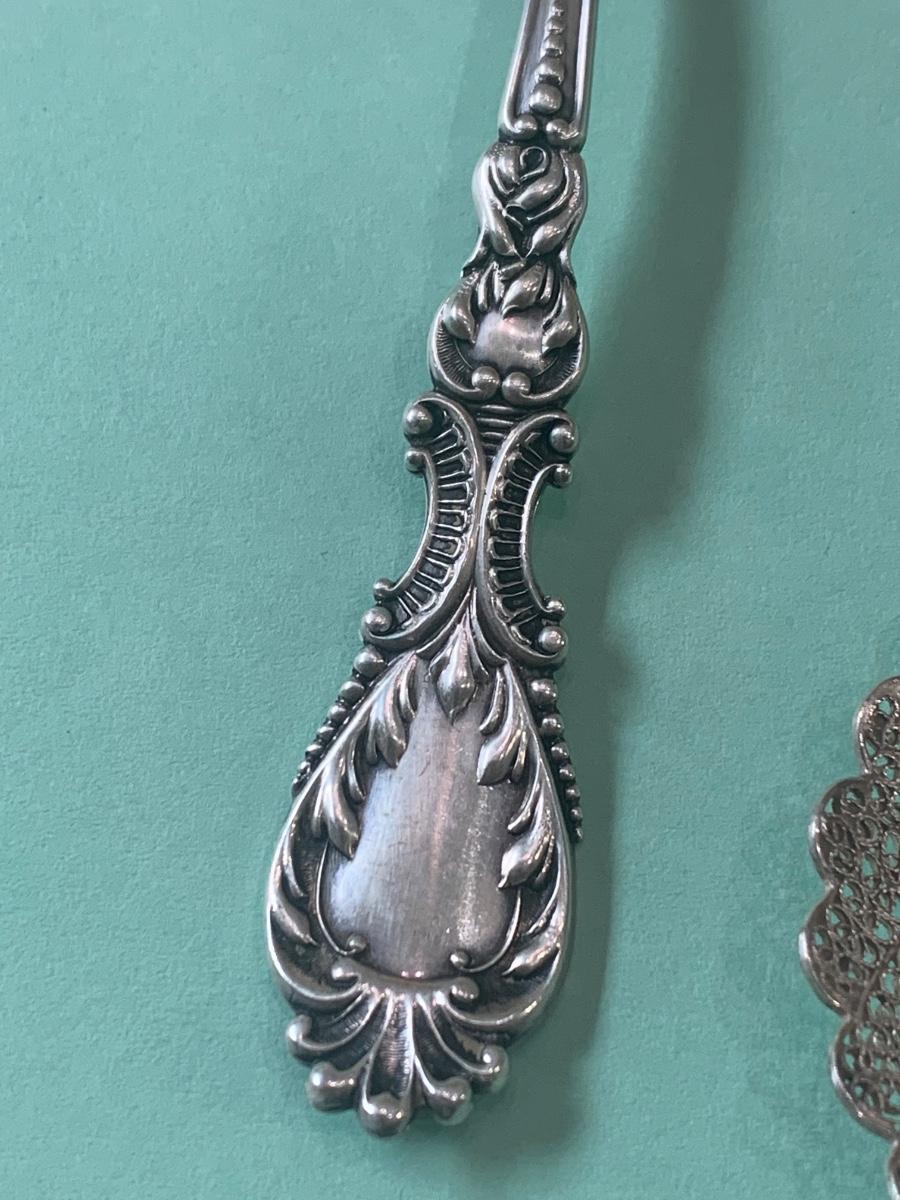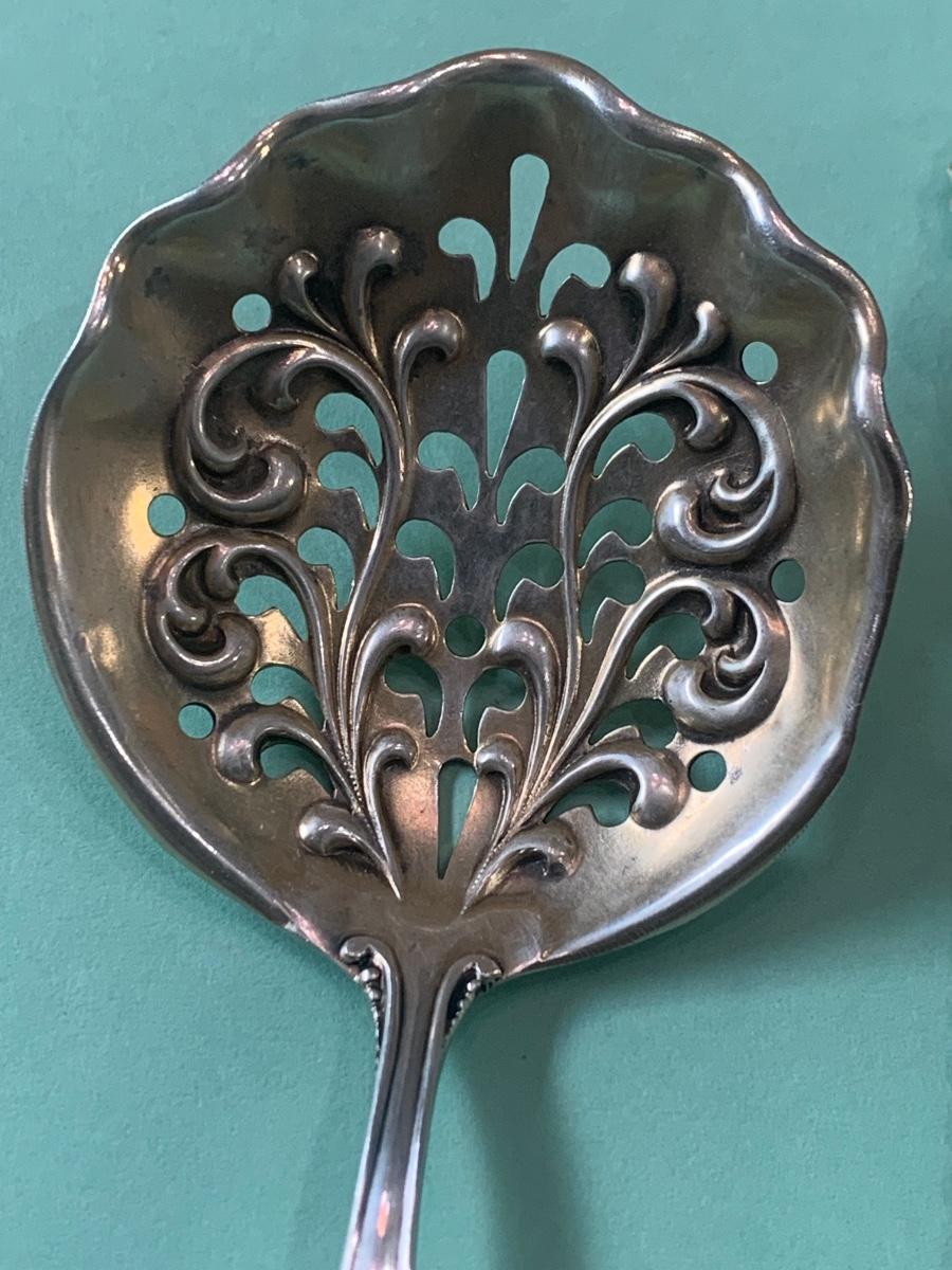 3 Ornate Filigree Sterling Silver Tomato / Sugar / Serving Spoons