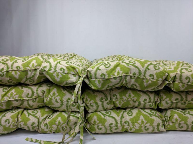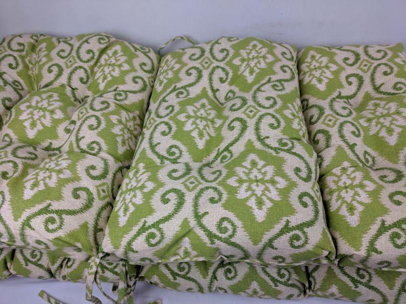 3 Outdoor High Back Chair Cushions, Greendale, Ikat Pattern - New