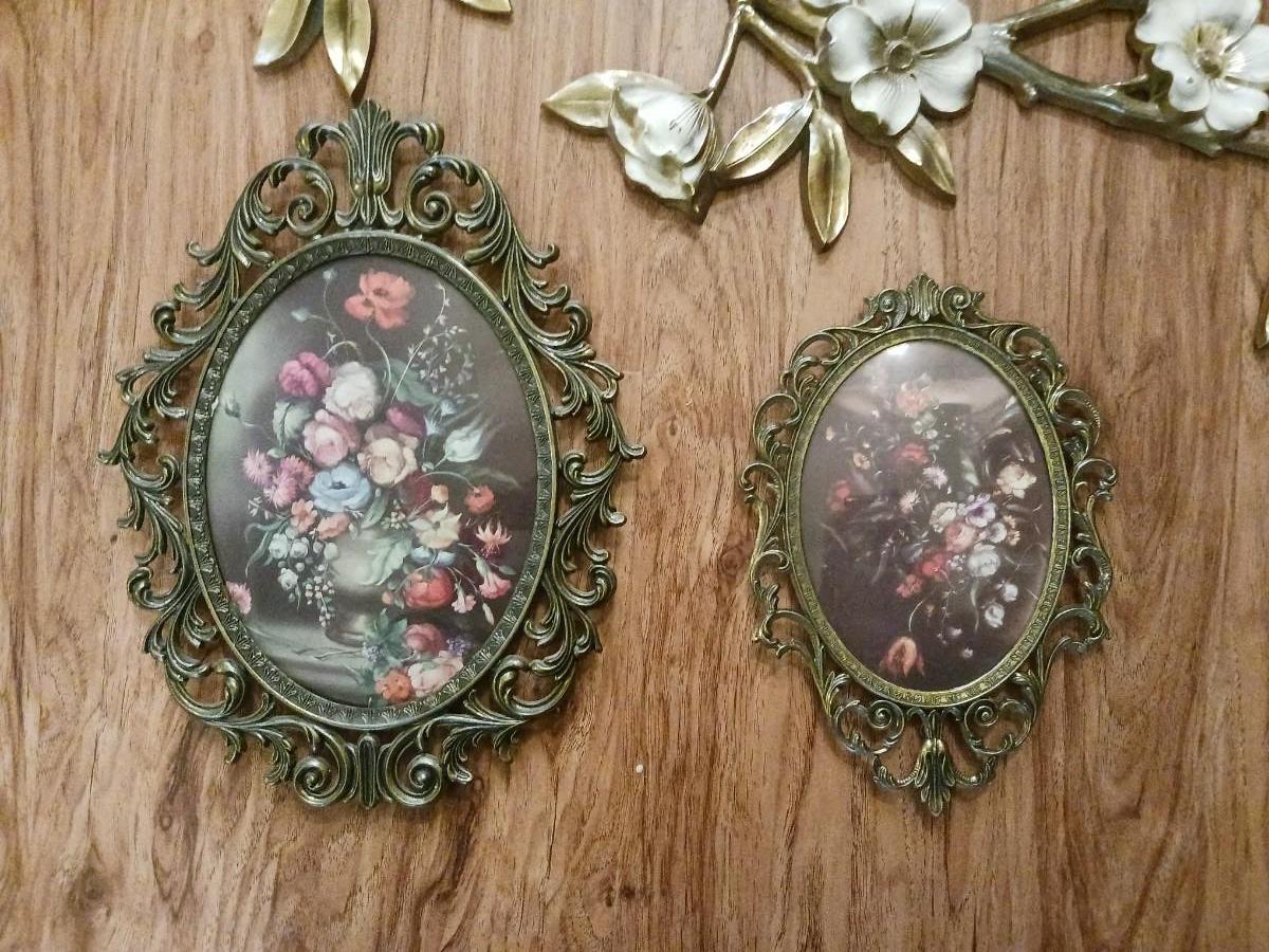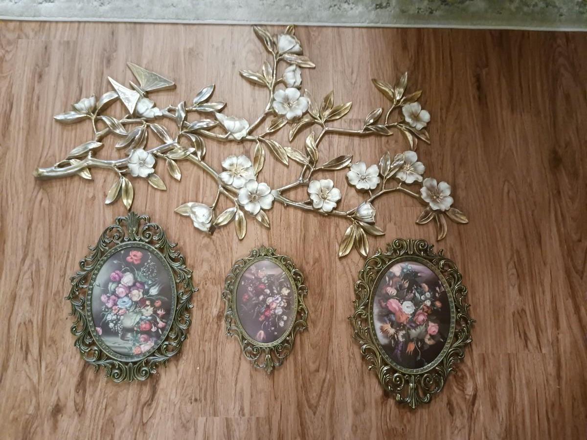 3 OVAL ORNATE PICTURES MADE IN ITALY AND A SYROCO WALL HANGING