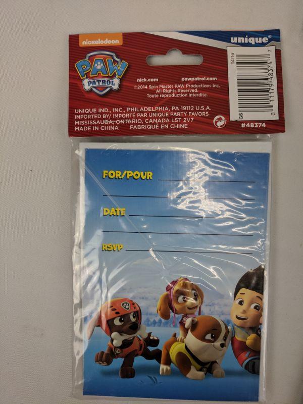 3 Pack of 8 Paw Patrol Invitations - New