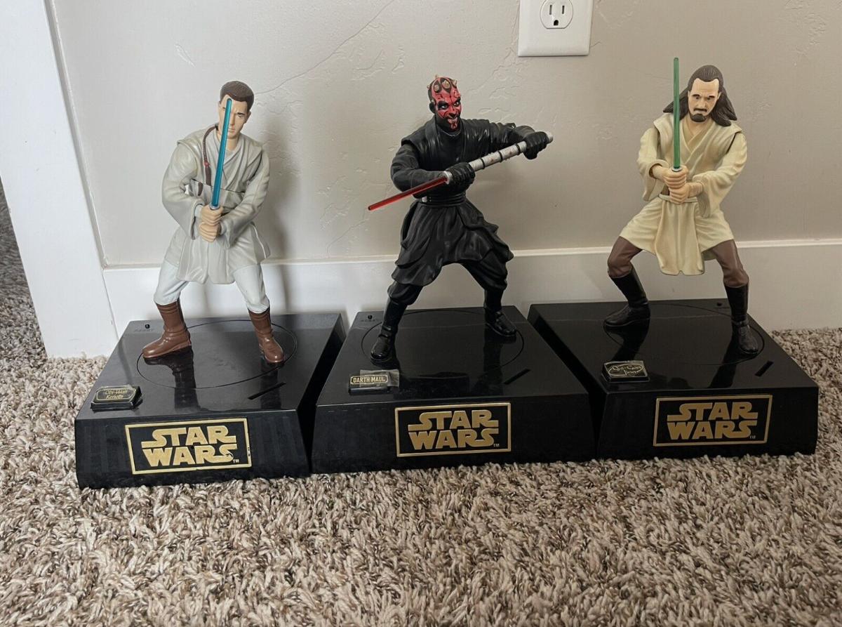 3 Pack STAR WARS DARTH MAUL Qui-Gon Jinn Action Figure - 1999 Super Rare Bank.