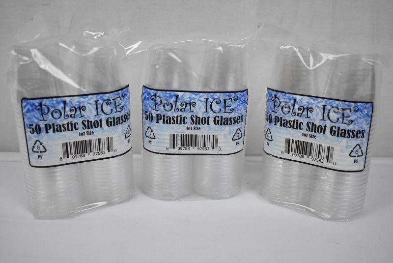 3 Packages 1 oz Plastic Shot Glasses, 50 in each package - New