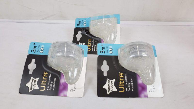 3 Packages of 2x Nipples, Tommee Tippee, Ultra 3m+ Med Flow - New, 1 Opened