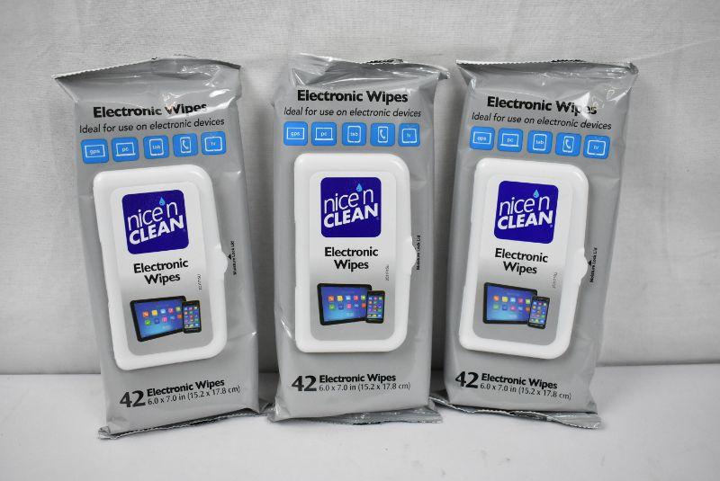 3 packages Wipes for Electronics, 42/ea package by Nice N Clean. Sealed - New