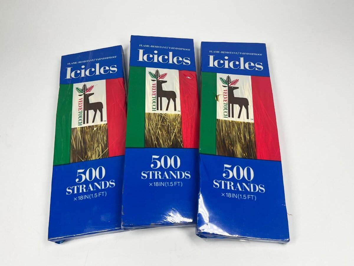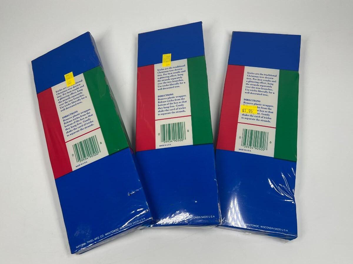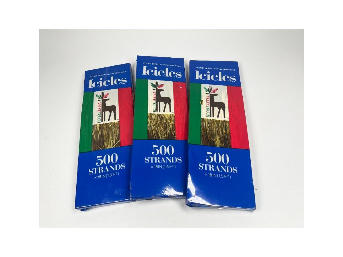 3 Packs of Vintage Foil Silver Metallic Tinsel Christmas Tree Icicles. Unused, 500 strand boxes.