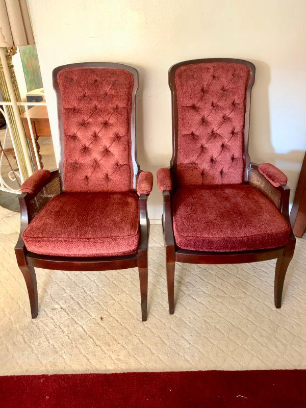 #3  PAIR HIGH BACK UPHOLSTERED ARMCHAIRS