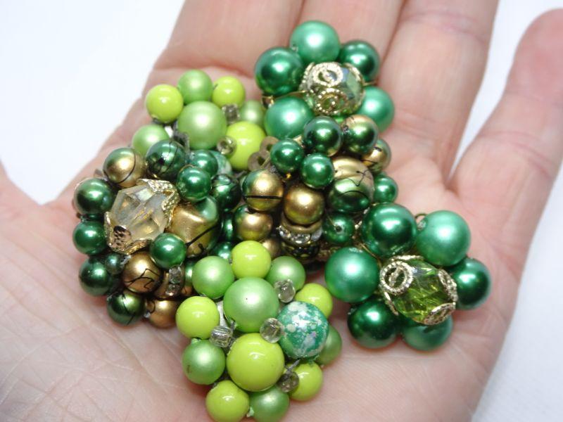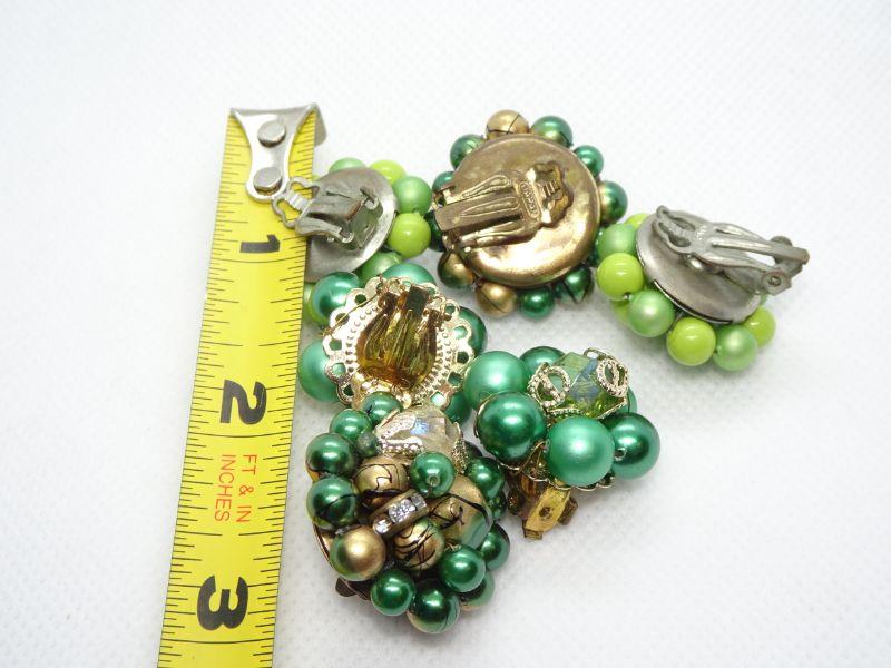 3 Pair of Cluster Clip On Earrings, Saint Patricks Day Green Earrings