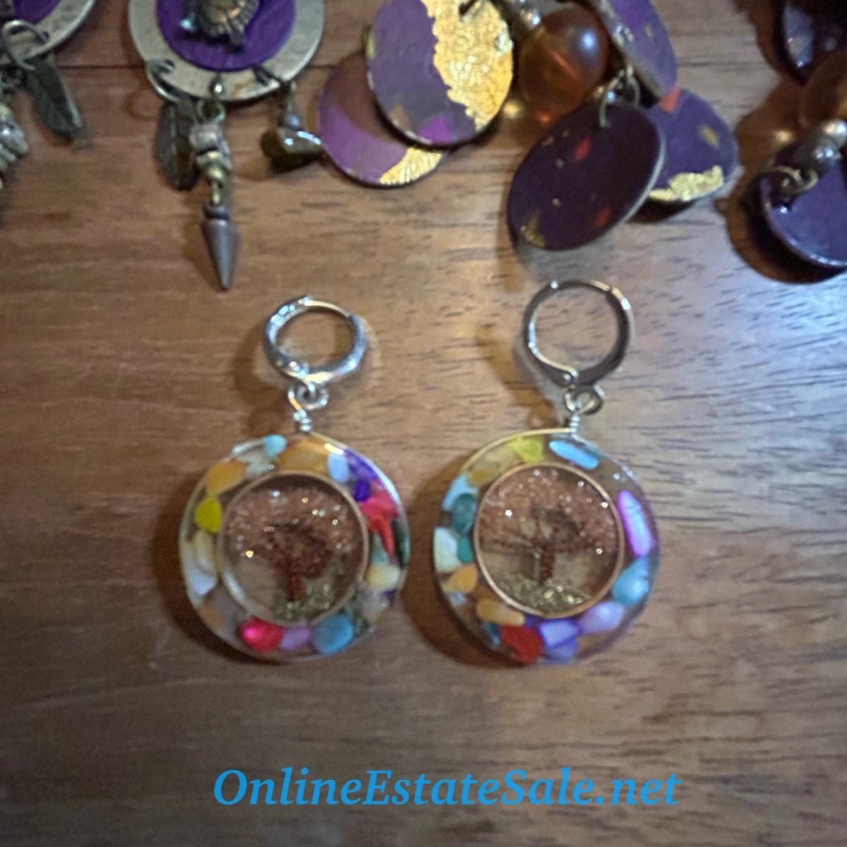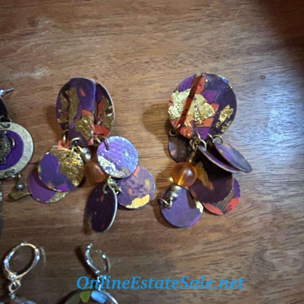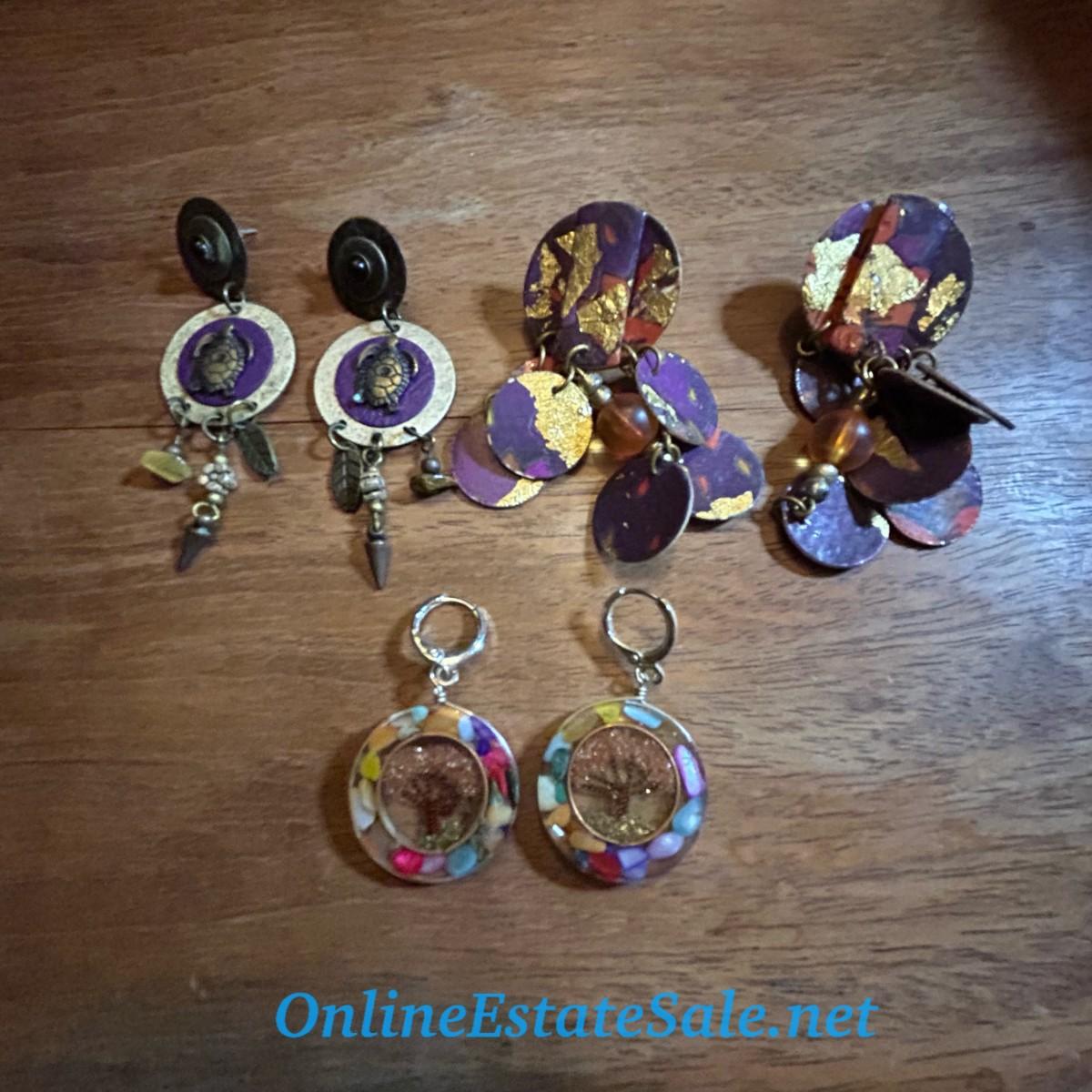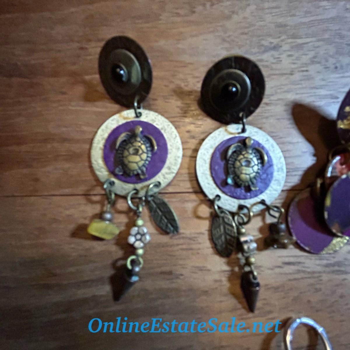 Purple and Silver Colored Round Turtle Dangle Earrings
