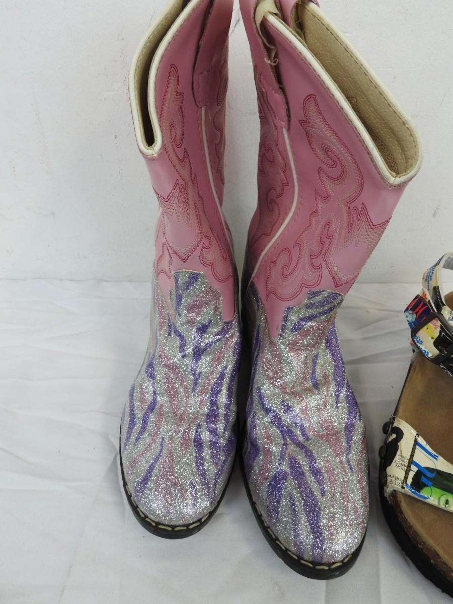 3 pairs Kids Shoes: Converse 1.5, Cowboy Boots 2, Sandals 1