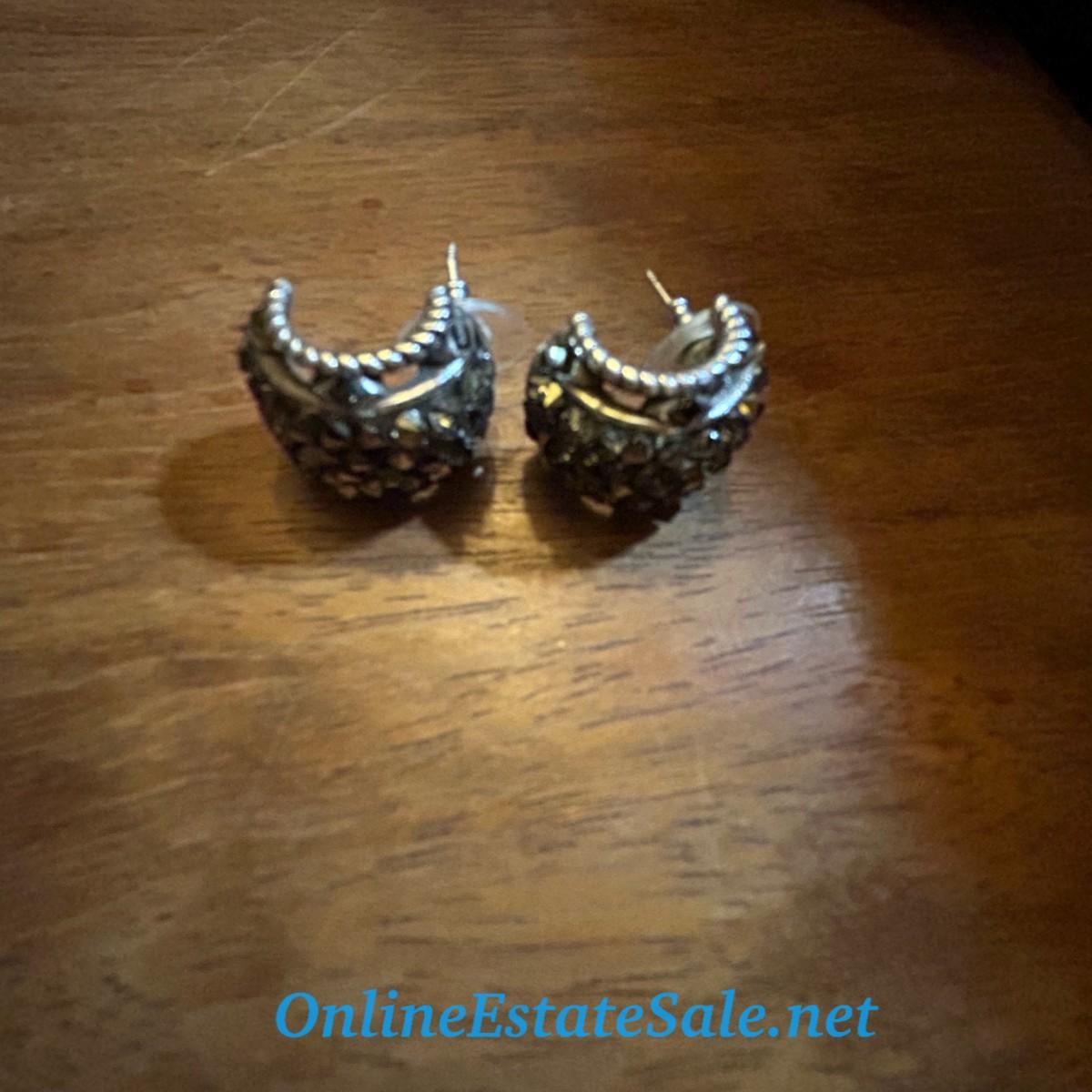 Silver and Black Colored Half Hoop Earrings with Stone Detail