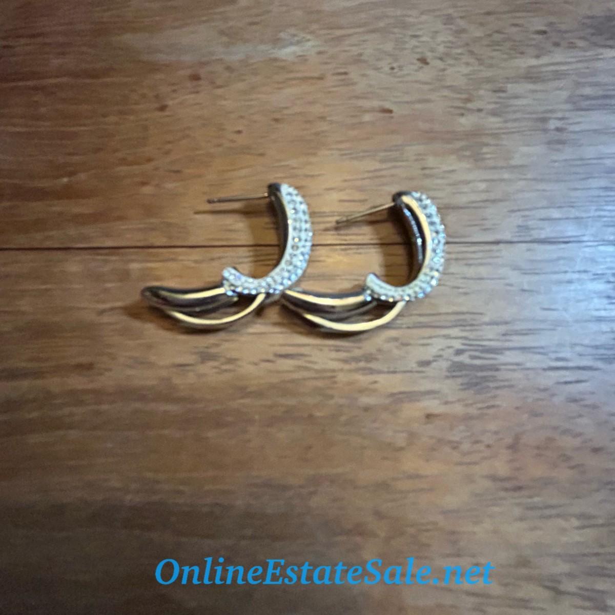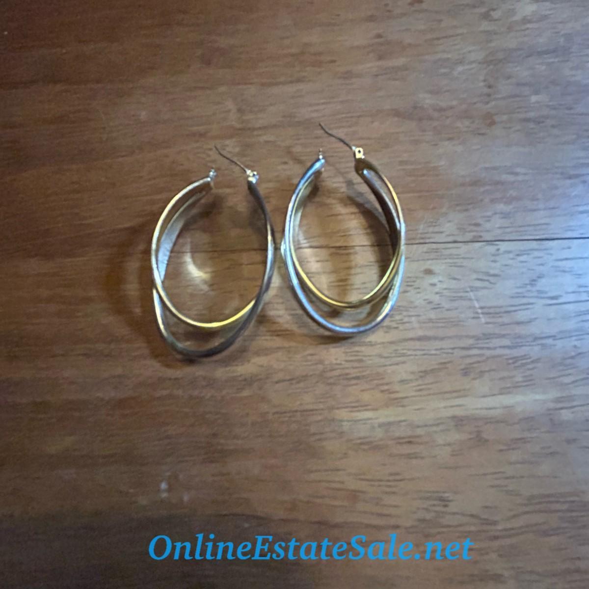 Silver and Gold Colored Oval Hoop Earrings
