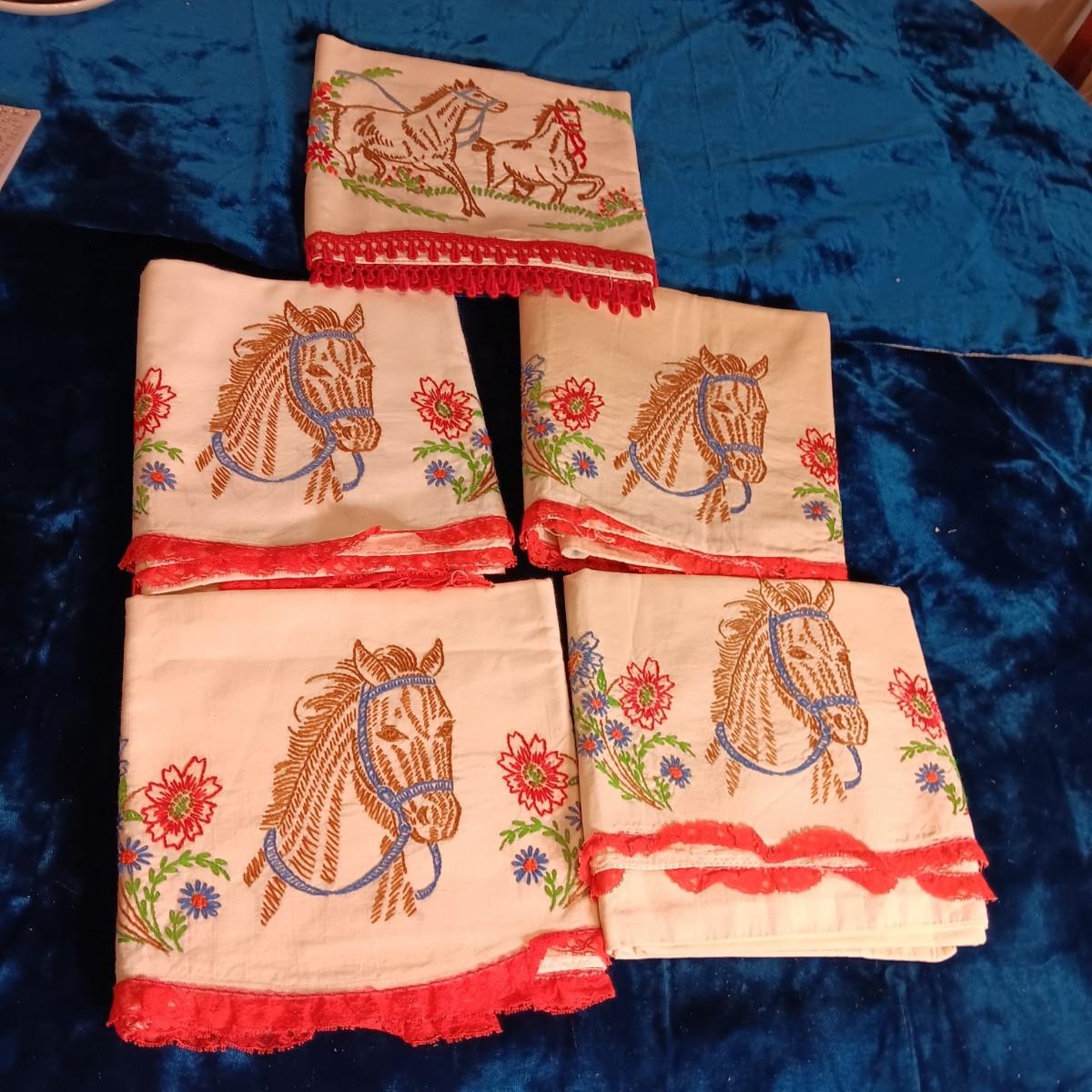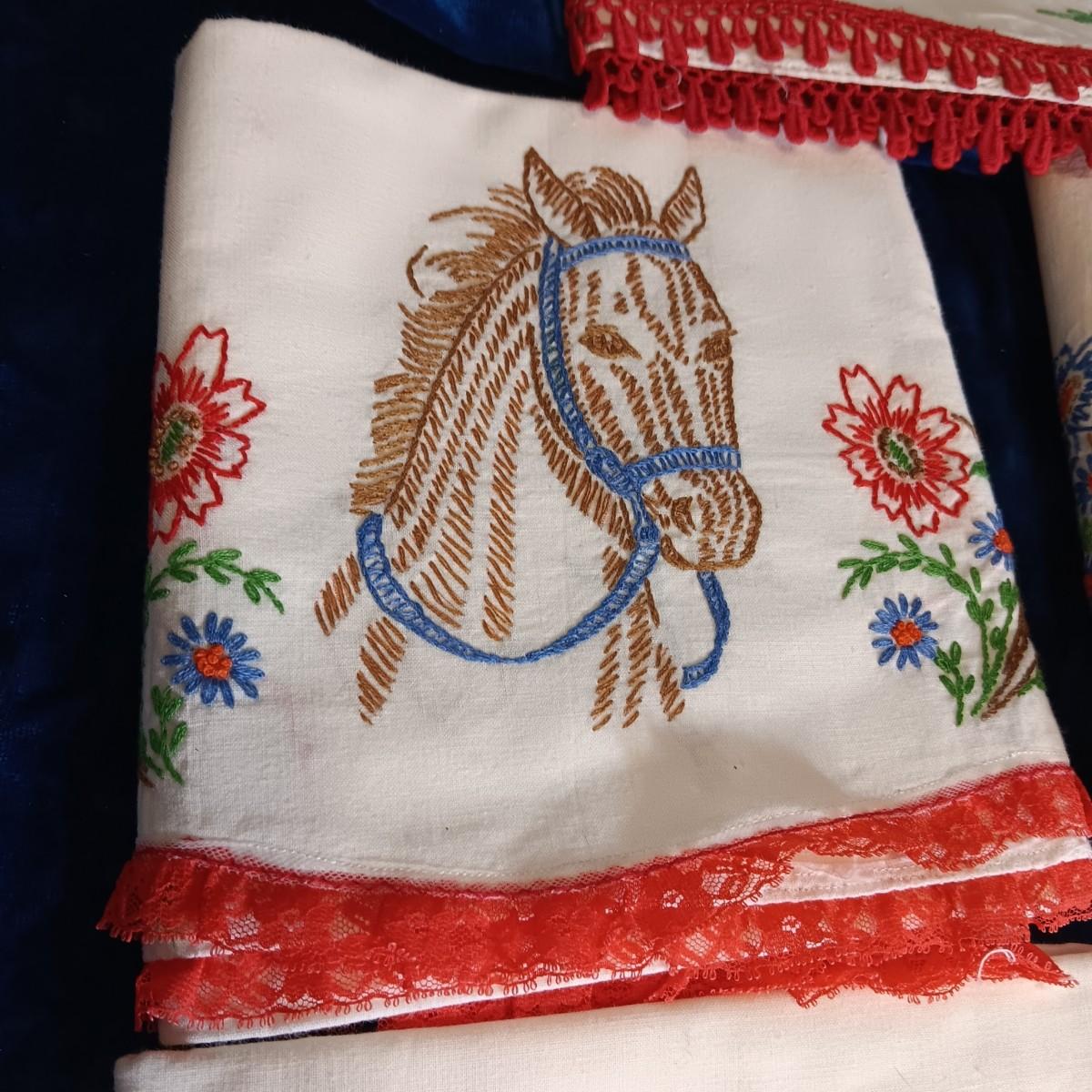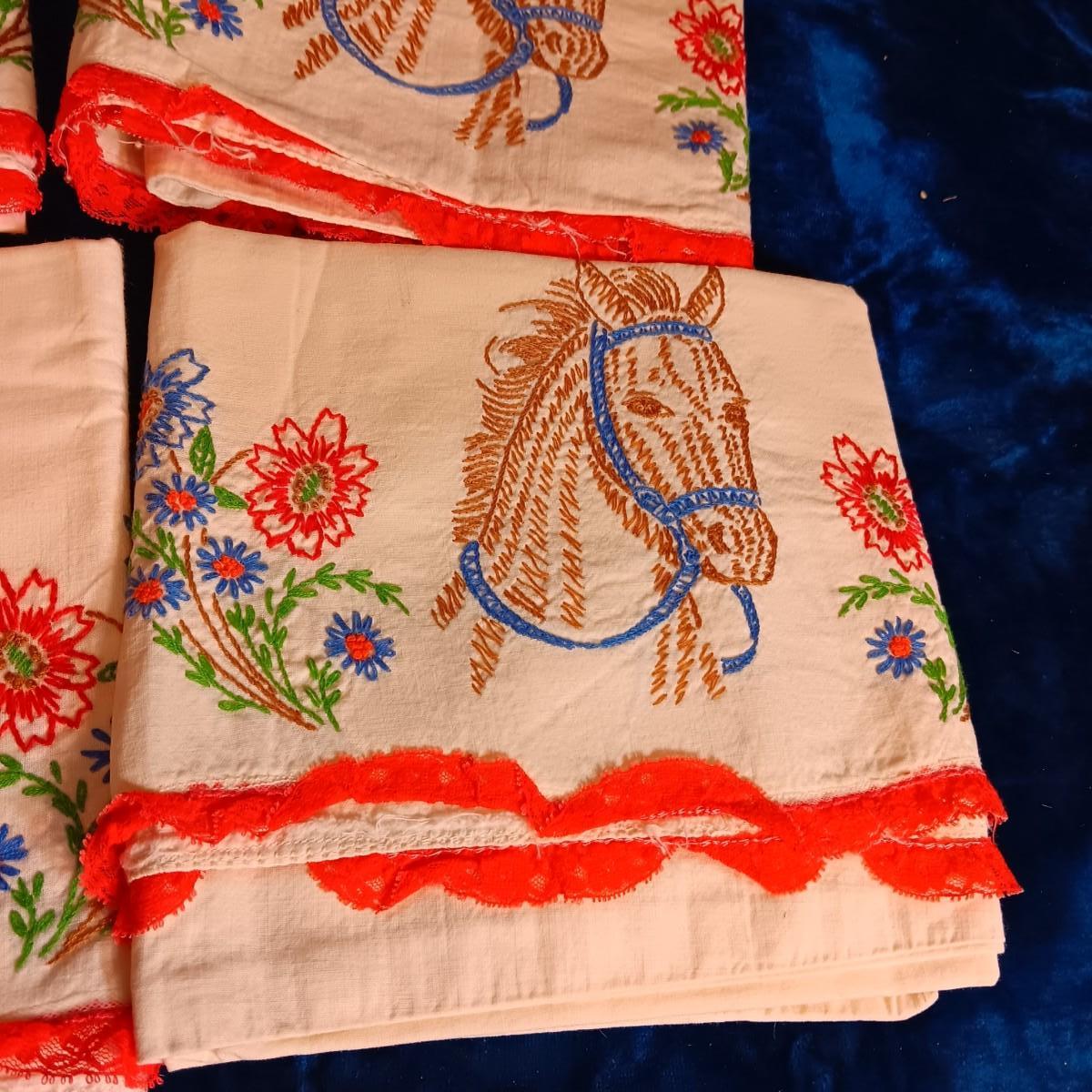3 PAIRS OF HAND EMBROIDERED HORSE PILLOW CASES