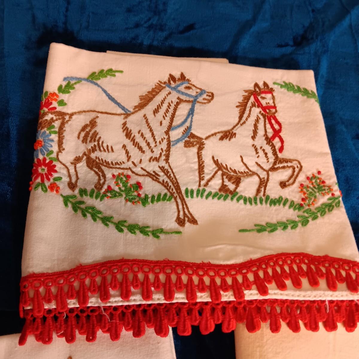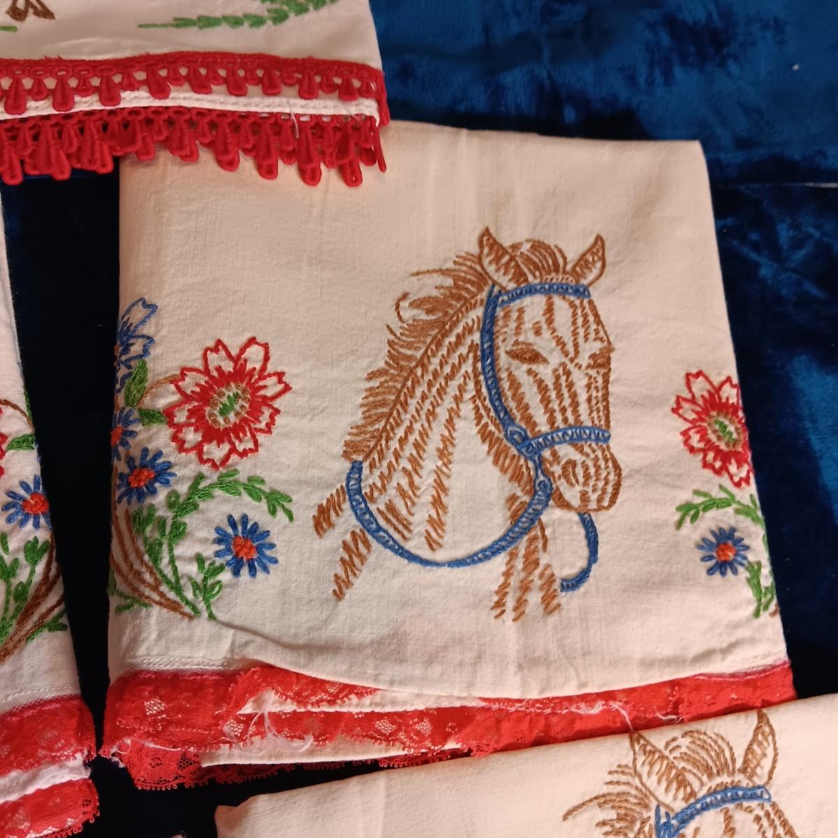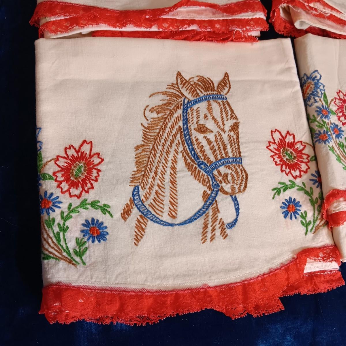 3 PAIRS OF HAND EMBROIDERED HORSE PILLOW CASES