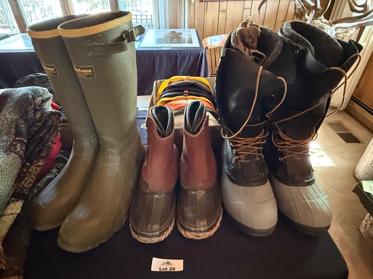 3 Pairs of Waterproof Boots - Schnee's, LaCrosse Outdoorsman & White's