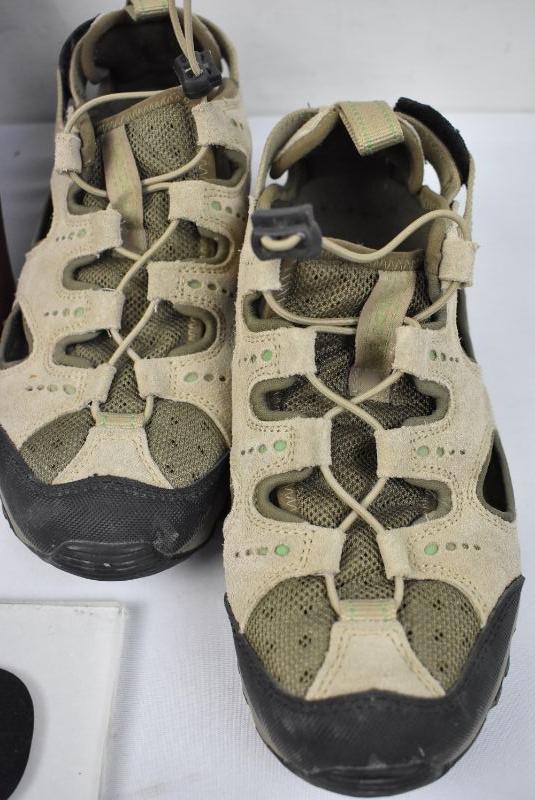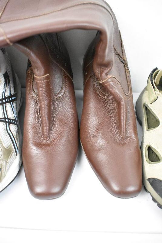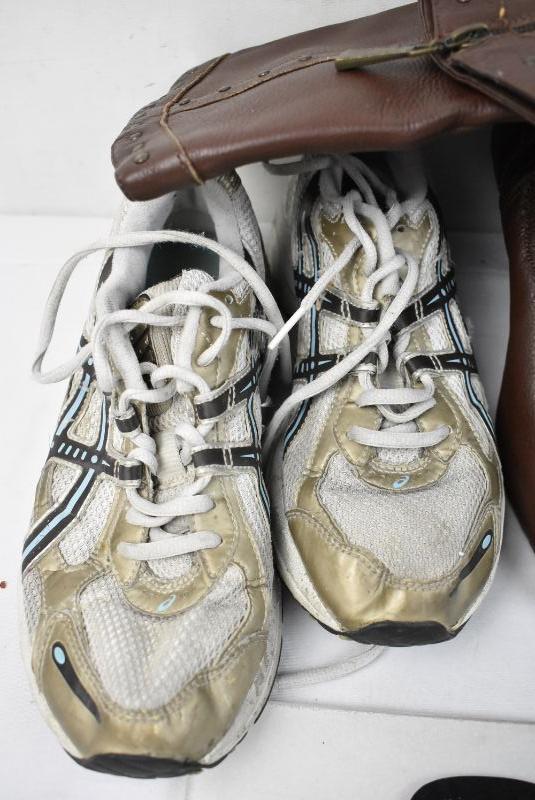 3 pairs of Shoes Size 7: Tennis Shoes, Brown Boots, Tan
