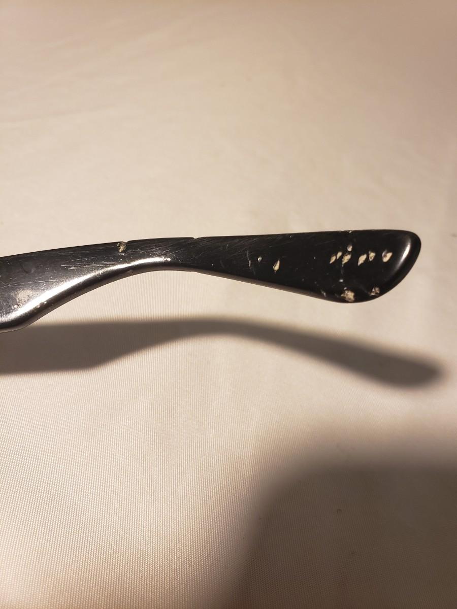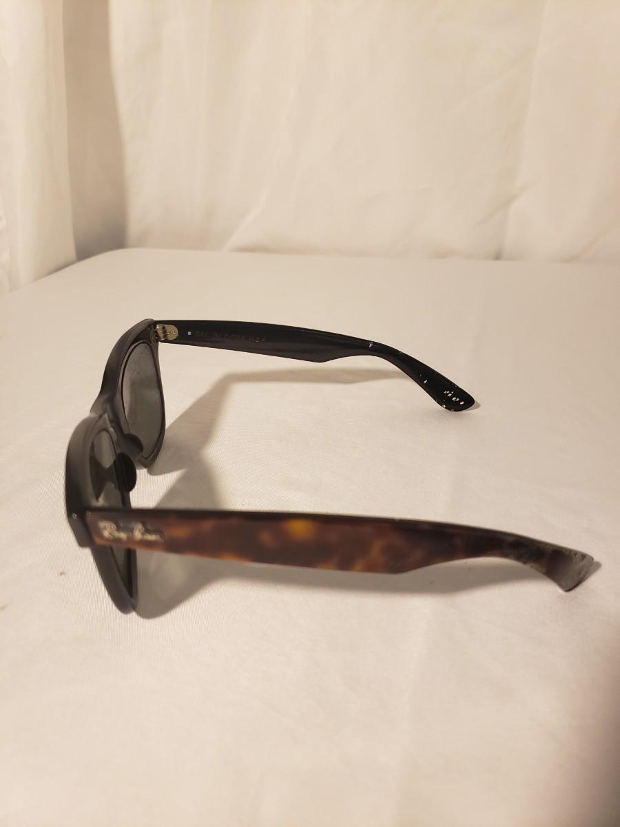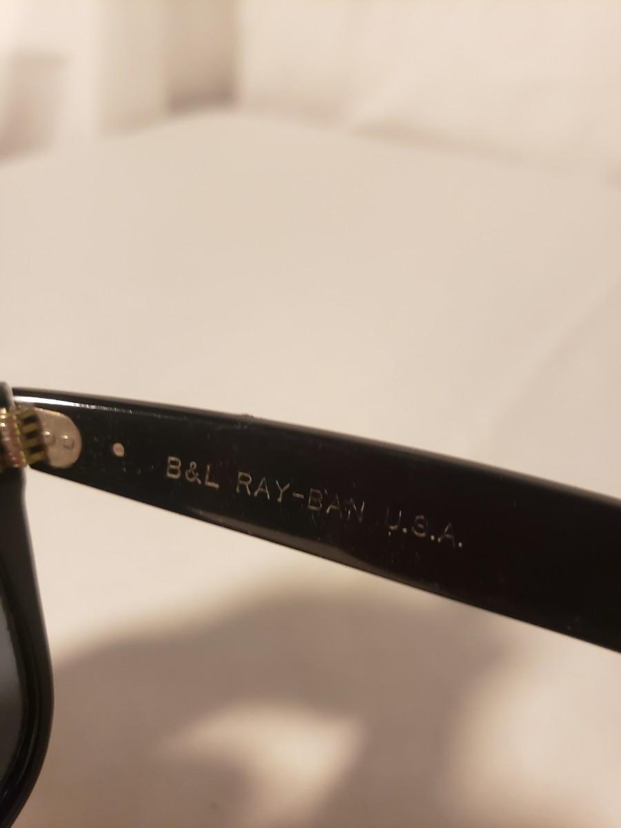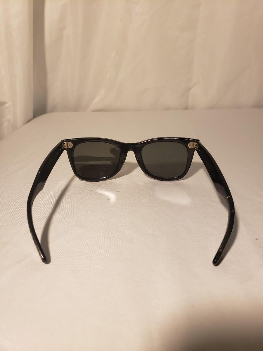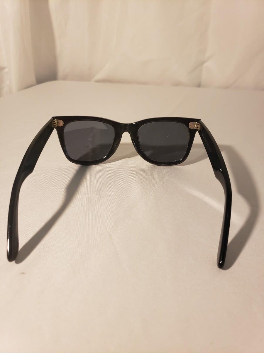 There are two pairs of Ray Ban sunglasses that are prescription as you can see the lines on the lenses in the pictures, as best as it can show. One pair has brown tortoise shell arms (there is some wear on the ends of the arms) and the other one has a mother of pearl mosaic on the arms and appear to be in good condition. Both Ray Bans come with a soft case.