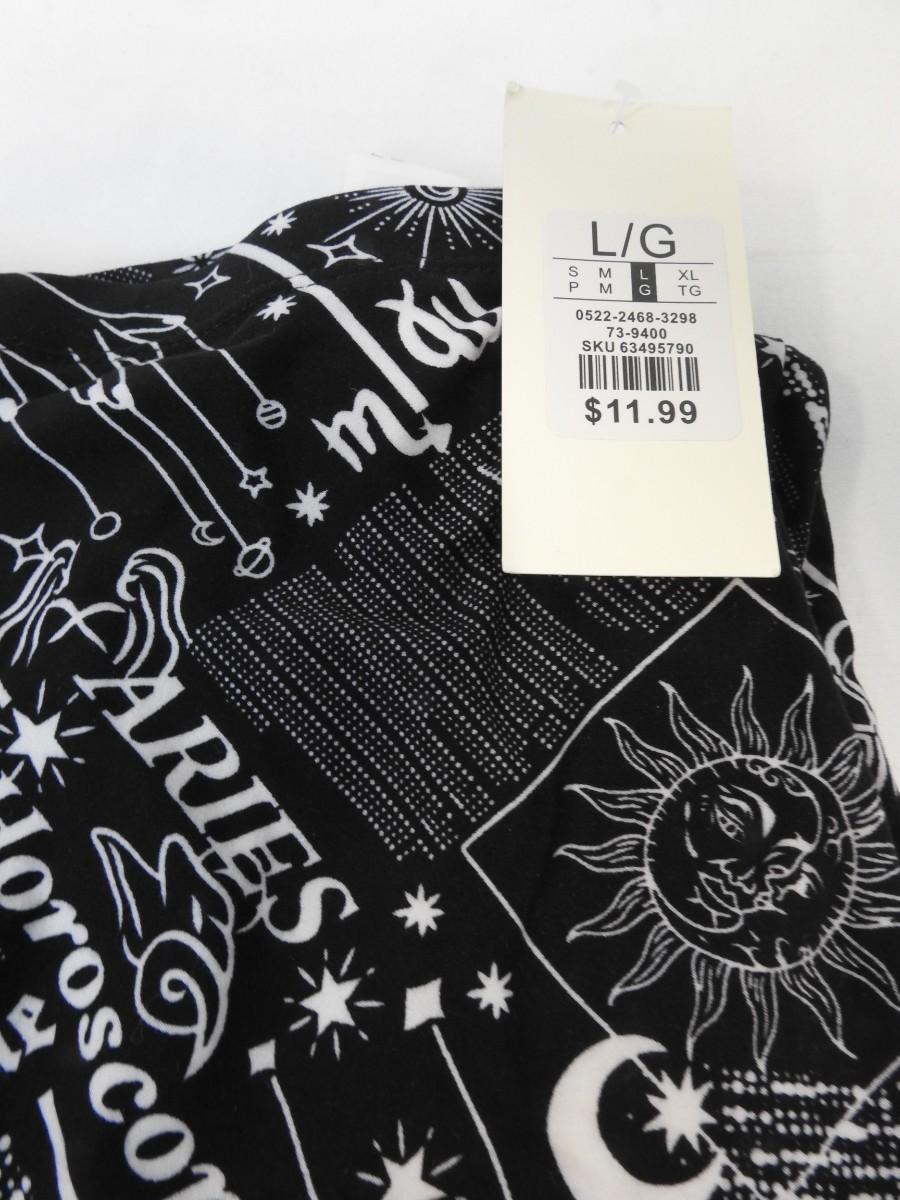 3 Pairs Super Soft Leggings size Large: B&W Graffiti, Gr/Bk Words, B&W Zodiak - New