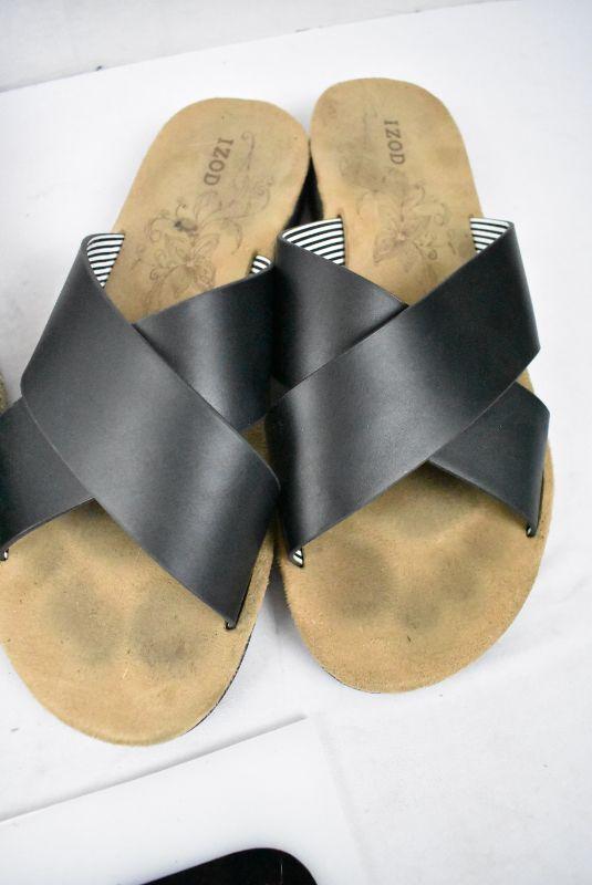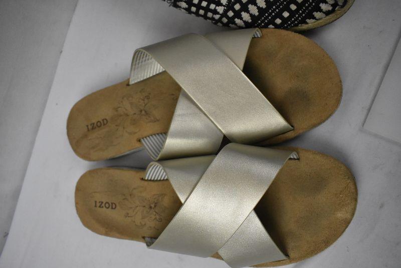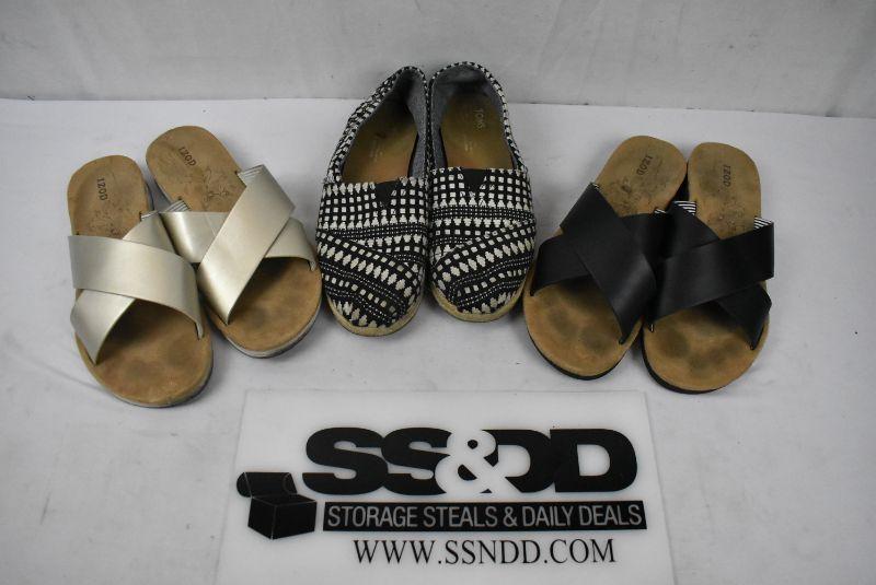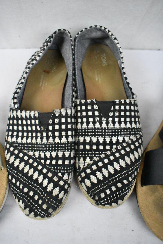 3 pairs Women's Shoes Size 8.5. Toms B&W slip-ons, & 2 pr Izod Sandals