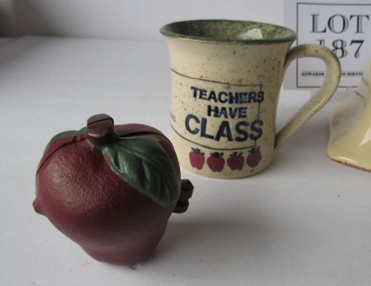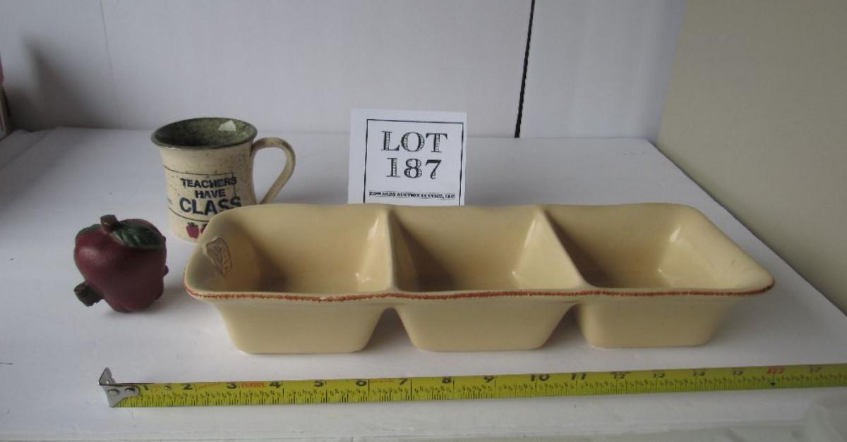Teacher Mug, Apple Shaped Metal Trinket Box, Tastefully Simple 3 Part Serving Dish