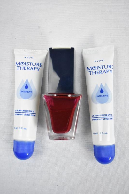 3 Piece Avon: 1 Nail Polish Cherry Jubilee & 2 Moisture Therapy Lip Moisturizer SPF 15 - New