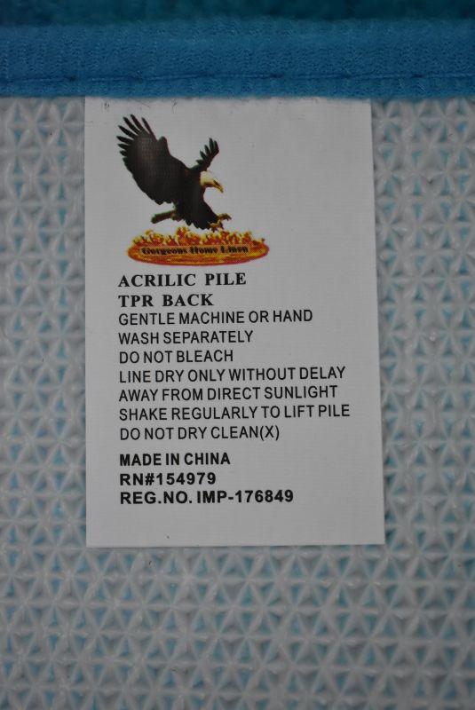 3 pc Bathroom Rugs, Turquoise. Toilet lid cover & 2 rugs. No tags - New