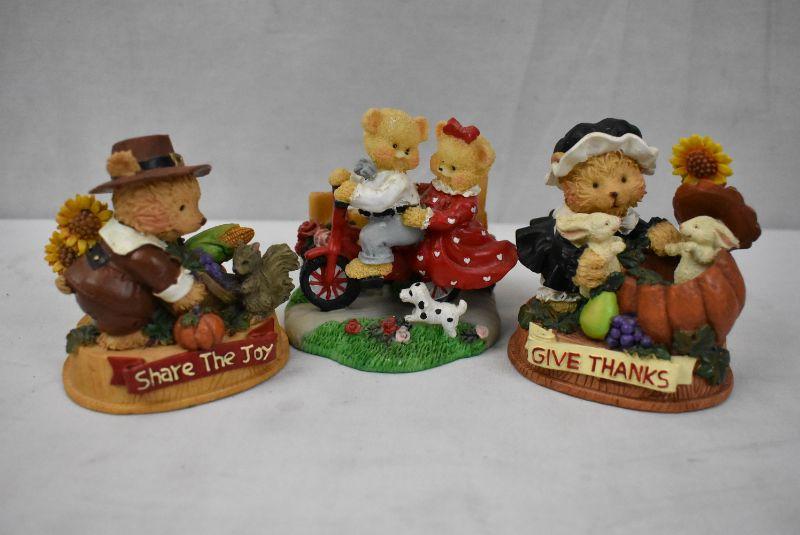 3 pc Bears Figurines: Thanksgiving & Valentine's
