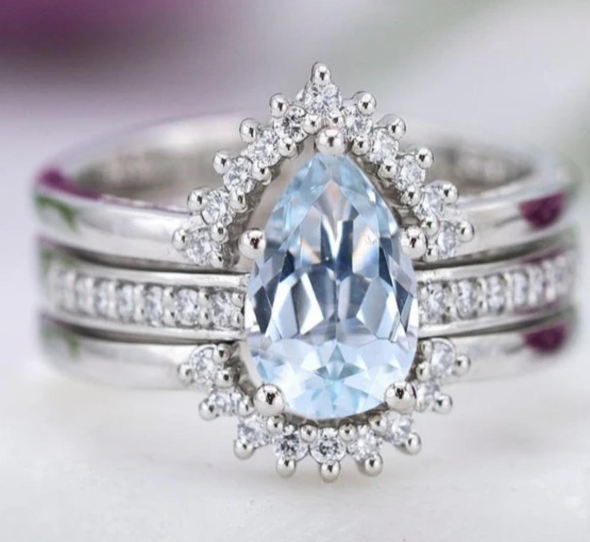 3 Pc Bridal Aquamarine Pear Cut Set