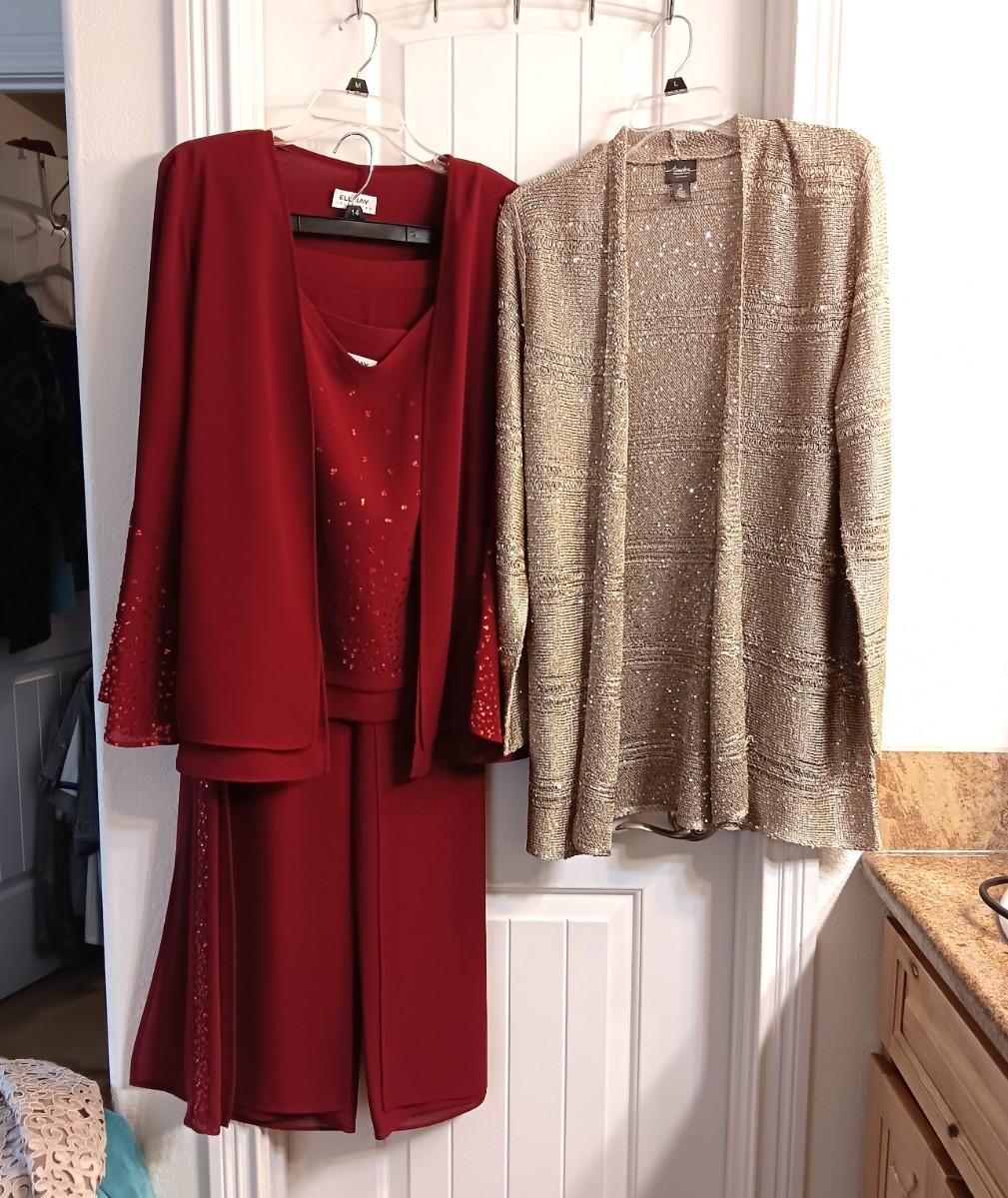3 PC BURGUNDY OUTFIT BY ELL JAY AND A CHICO'S SWEATER (2)