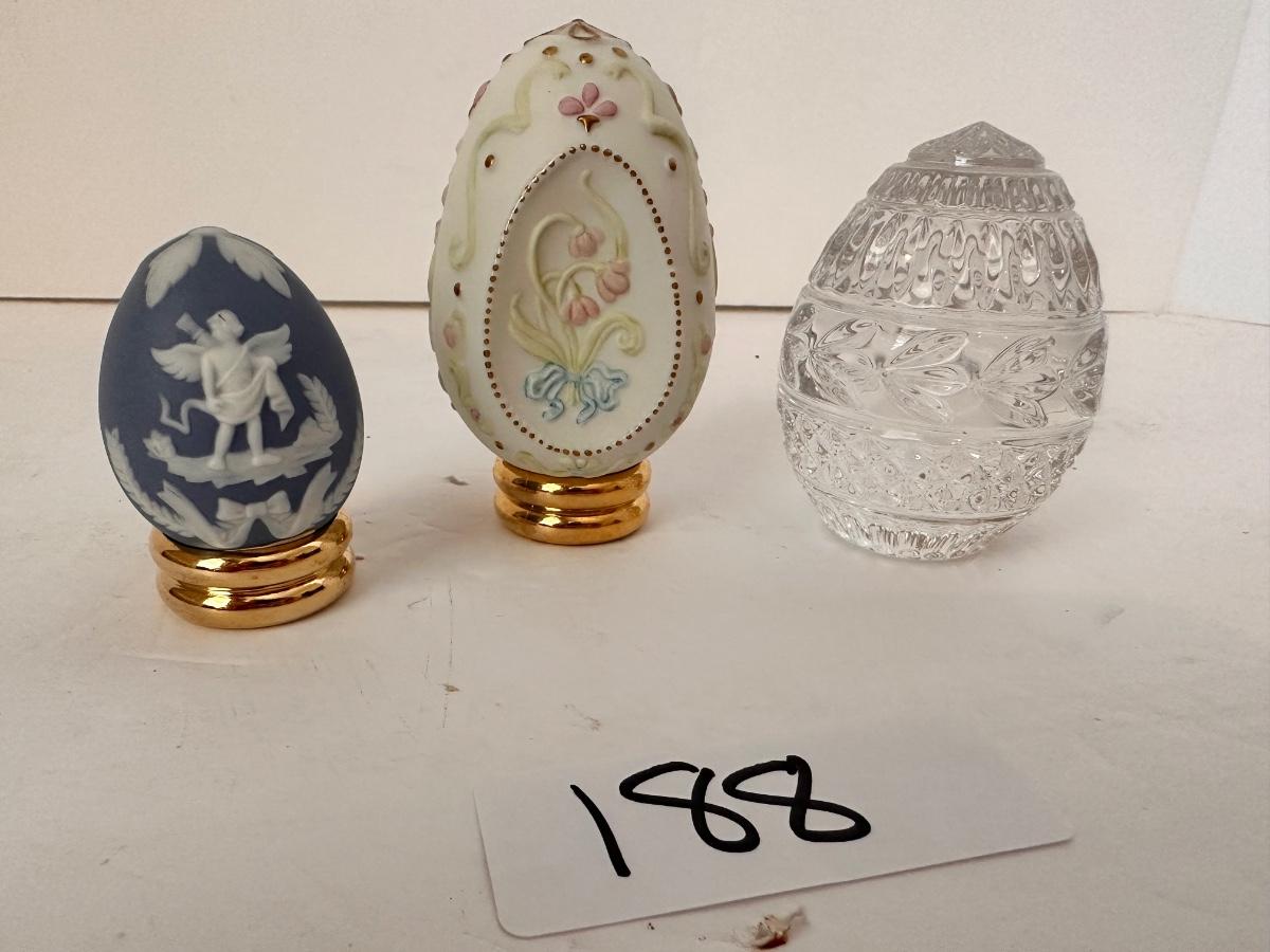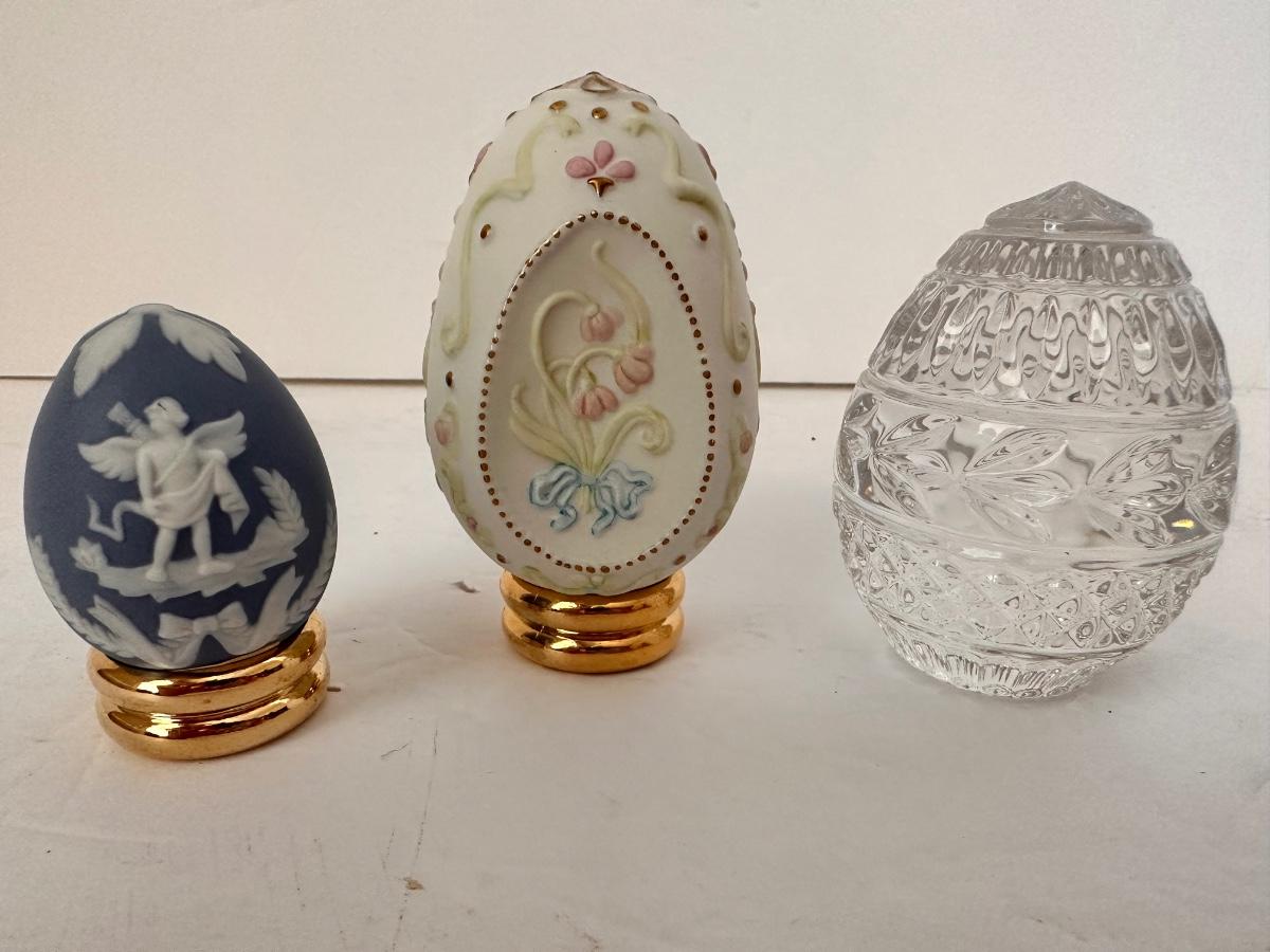 PERIAN STYLE COLLECTOR'S TREASURY OF EGGS, CRYSTAL EGG, FLORAL EGG AS PICTURED