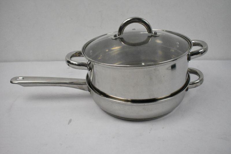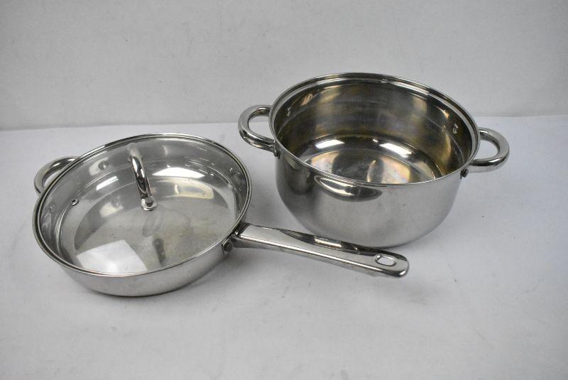 3 pc Cookware. Stainless Steel by Cook N Home. Lid fits both pieces