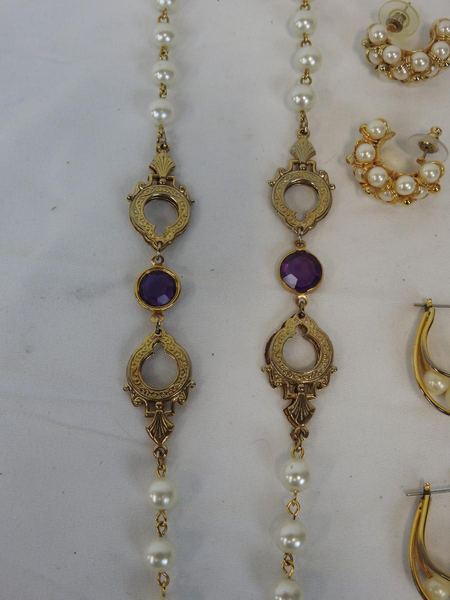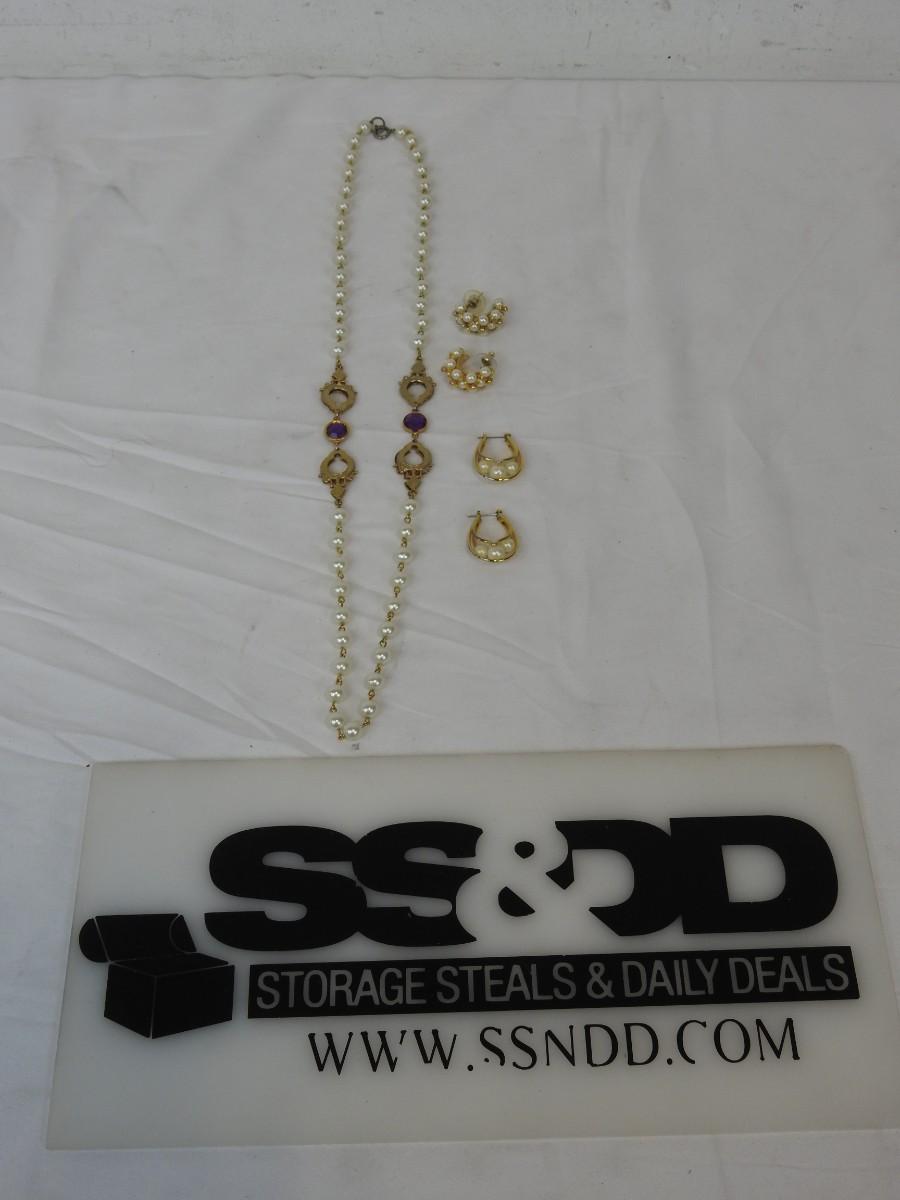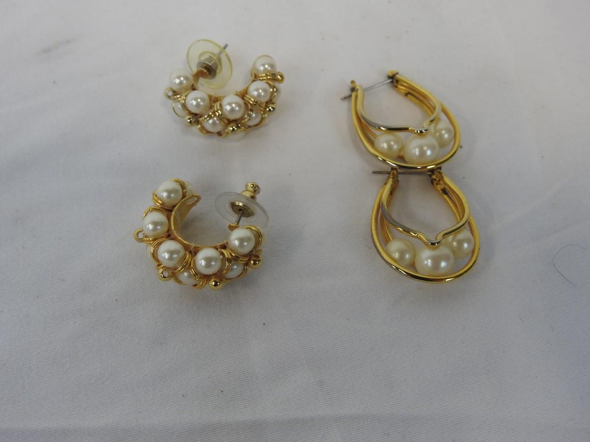 3 pc Costume Jewelry: "Pearls" & "Gold" 2 pairs of earrings & 1 necklace