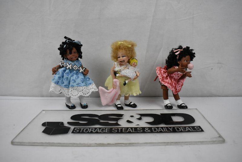 3 pc Doll Figurines. Ceramic? Clay? 1 Broken Leg 1 broken Finger