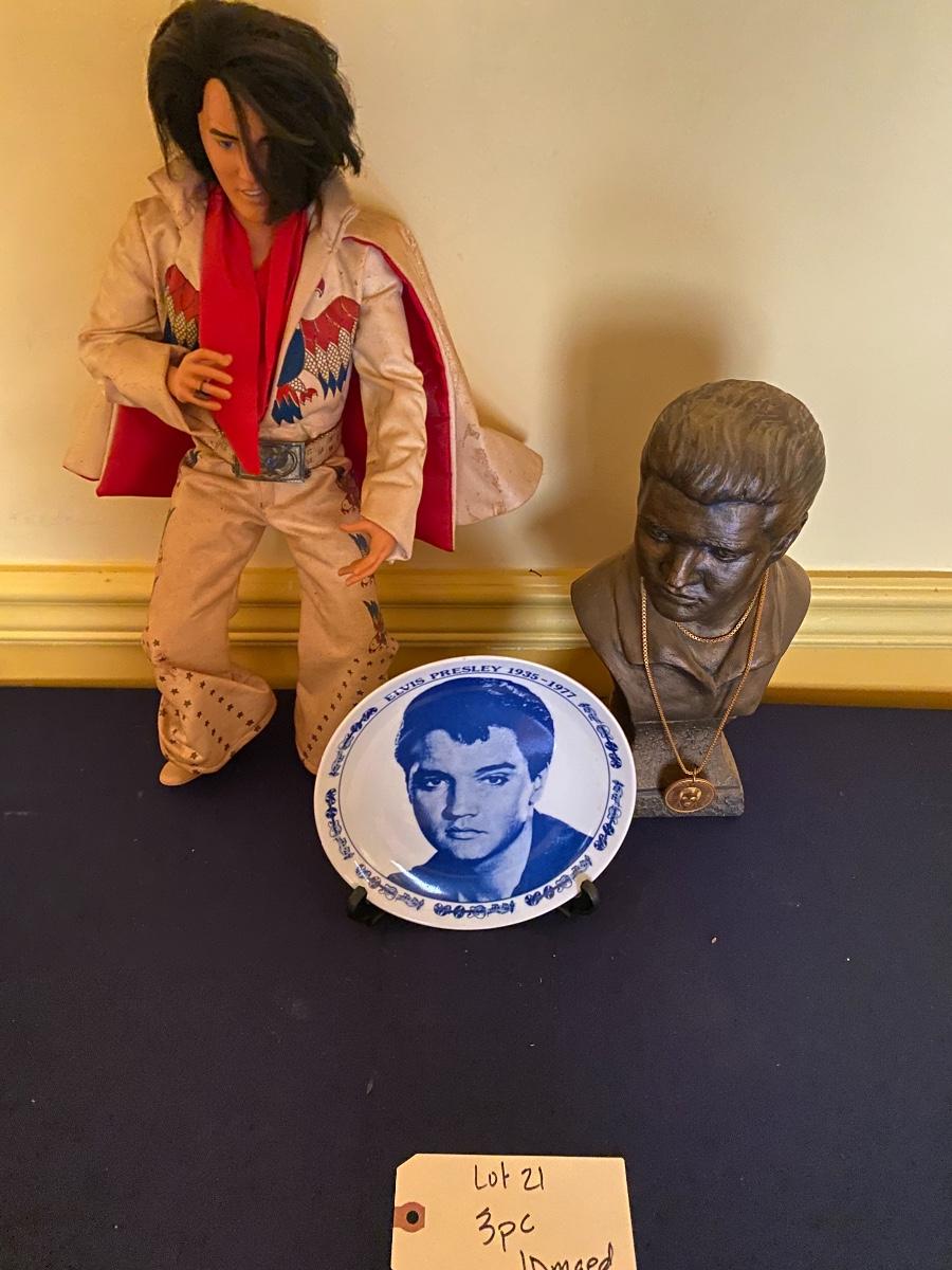 3 PC Elvis Lot, Doll Needs Cleaning, Bust has Cracks at Base, As Pictured