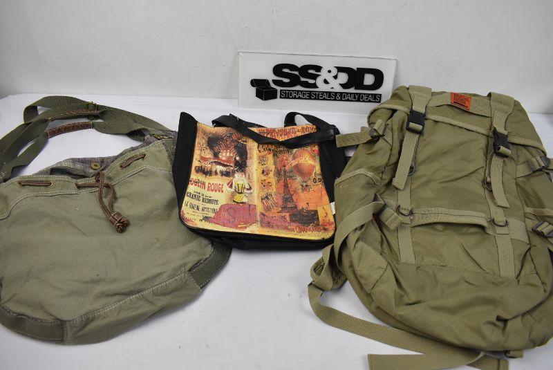 3 pc: Green OP Tote Bag, Black/Orange Tote Purse, Green/Khaki/Orange Lifeguard Backpack