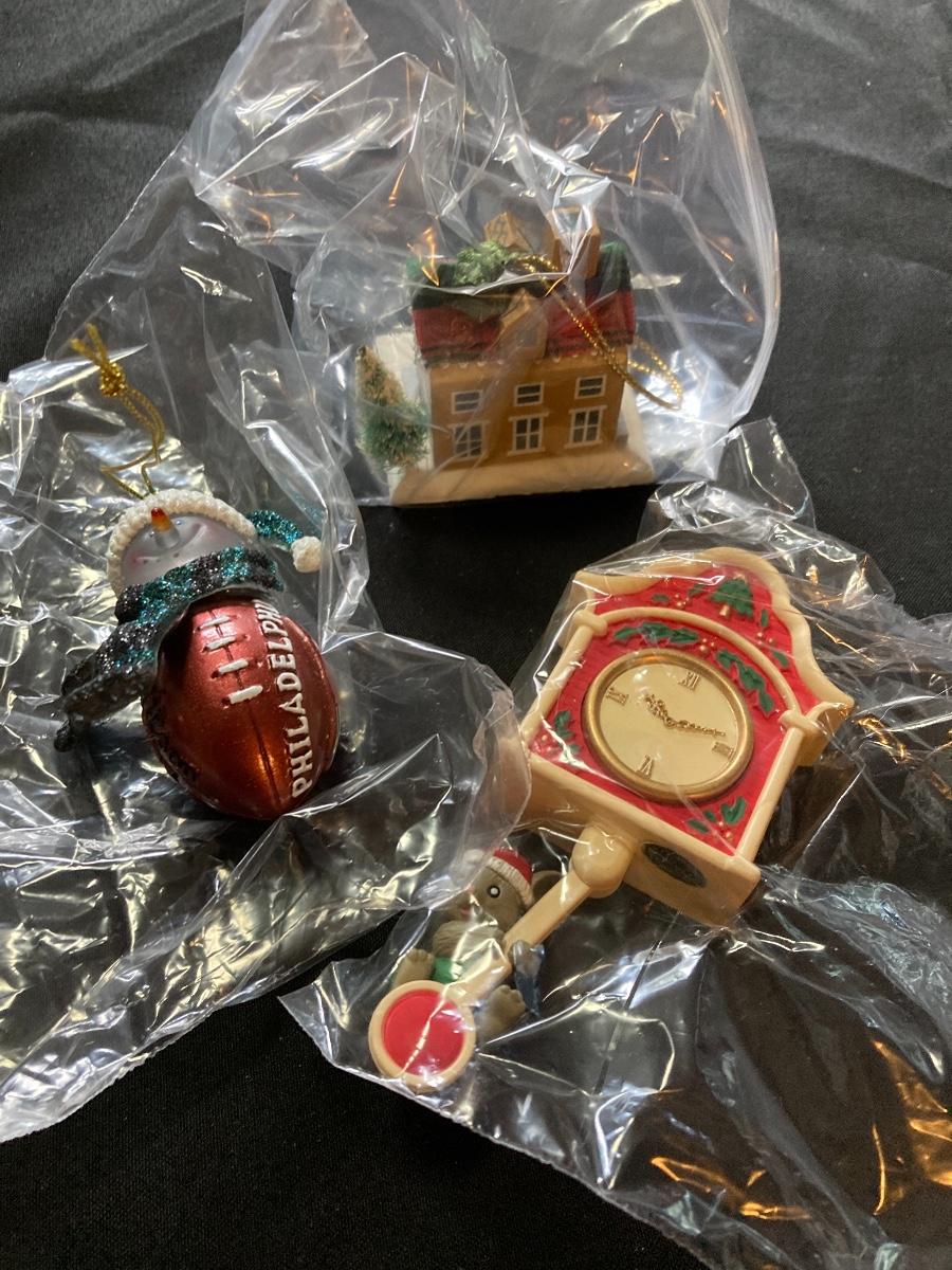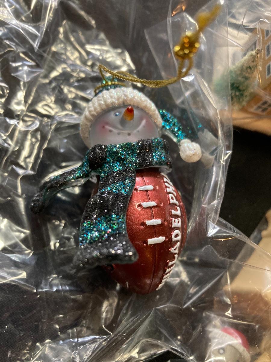 3 pc Hallmark Ornament Lot with EAGLES Football Snowman