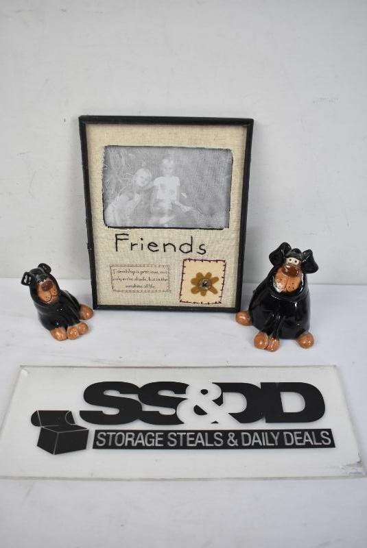 3 pc Home Decor: Friends Frame & 2 porcelain dog figurines