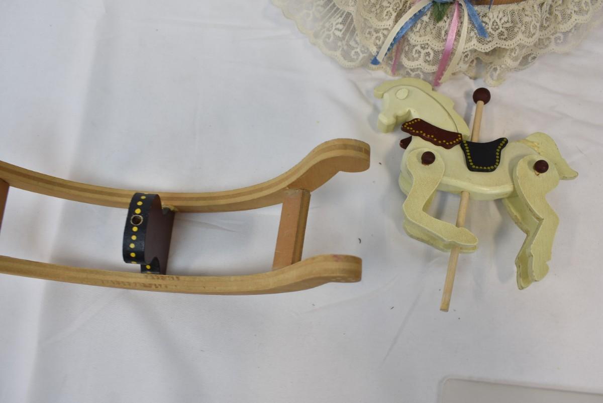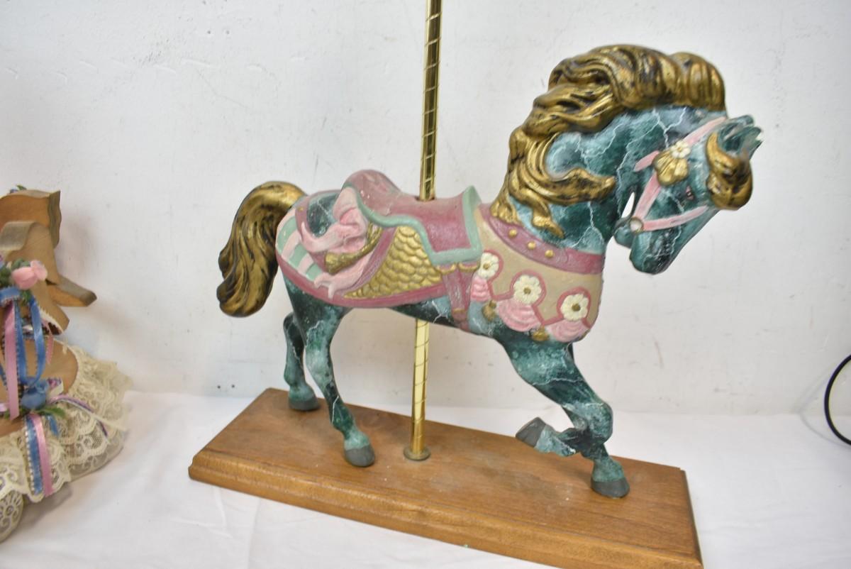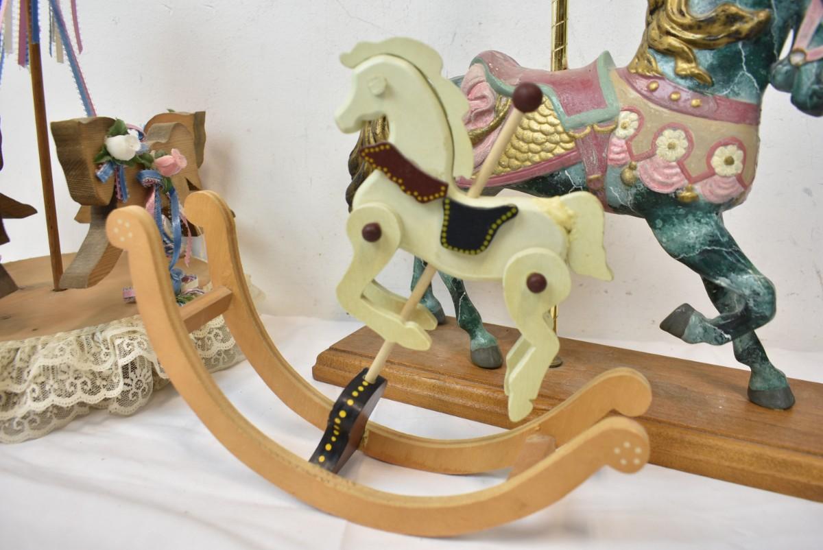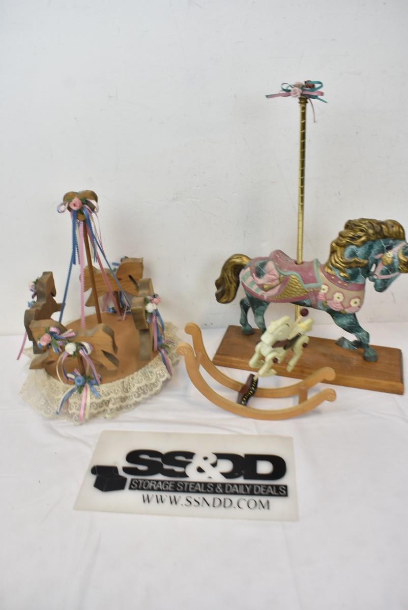 3 pc Horse/Carousel Decor: Rocking Horse, Maypole Carousel