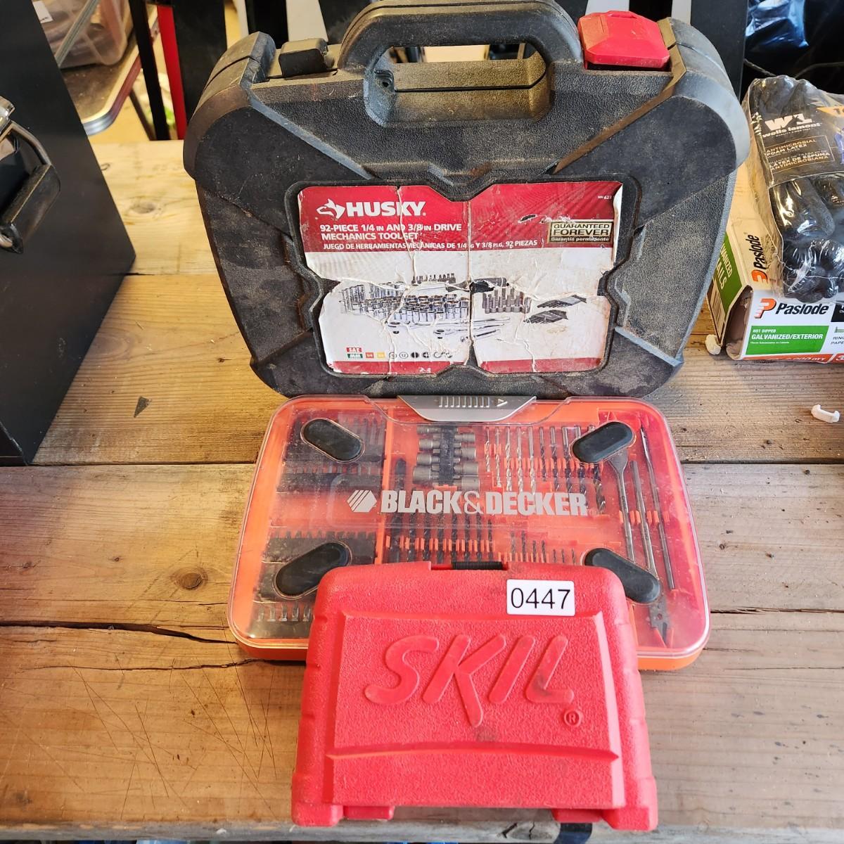 3 Pc. Husky, Black & Decker, Skil Tool set Lot 447