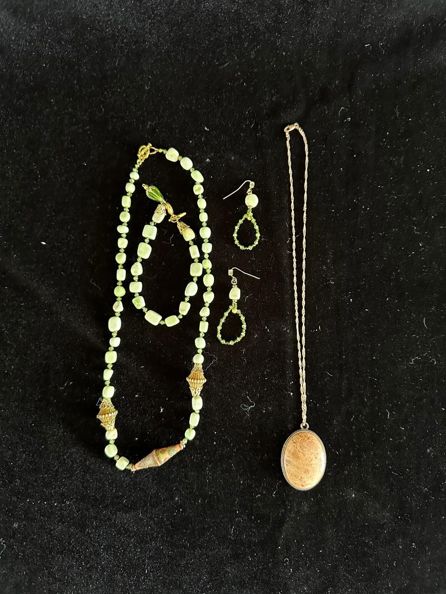 3 PC JEWELRY AND STONE MEDALLION NECKLACE