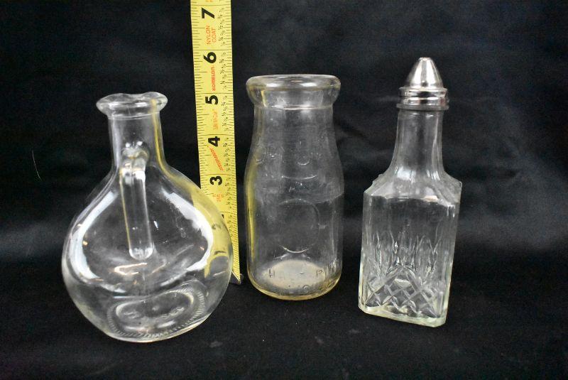 3 pc Kitchen Clear Glass: small pticher, half pint milk jug, oil jar